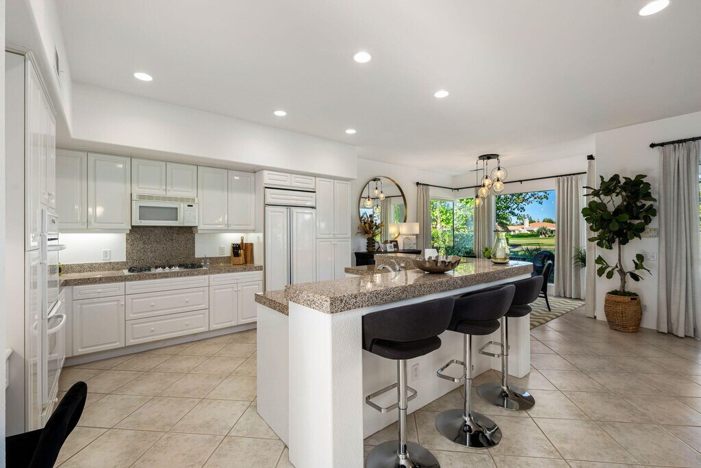 The Ryder 3 Floor Plan,one of the most popular floor plans at PGA West has been recently remodeled to a 4 bedroom. This is a perfect opportunity to rent this beautiful,turnkey furnished property either monthly or seasonally,while you try out life in the magical desert. This property is located on the 18th Tee of the Tom Weiskopf Private Course in the world famous PGA West development. This property has a great open floorplan seamlessly flowing from the kitchen to the living room and even features a separate bar with a mini fridge to store your favorite wines,spirits,and mixers. The backyard is an entertainers dream,featuring a built in BBQ,pool/spa,plenty of seating space,and incredible Northwest mountain views. For shoulder season/summer rates,please contact listing agent. The property is rented March 2026; available ALL other months.