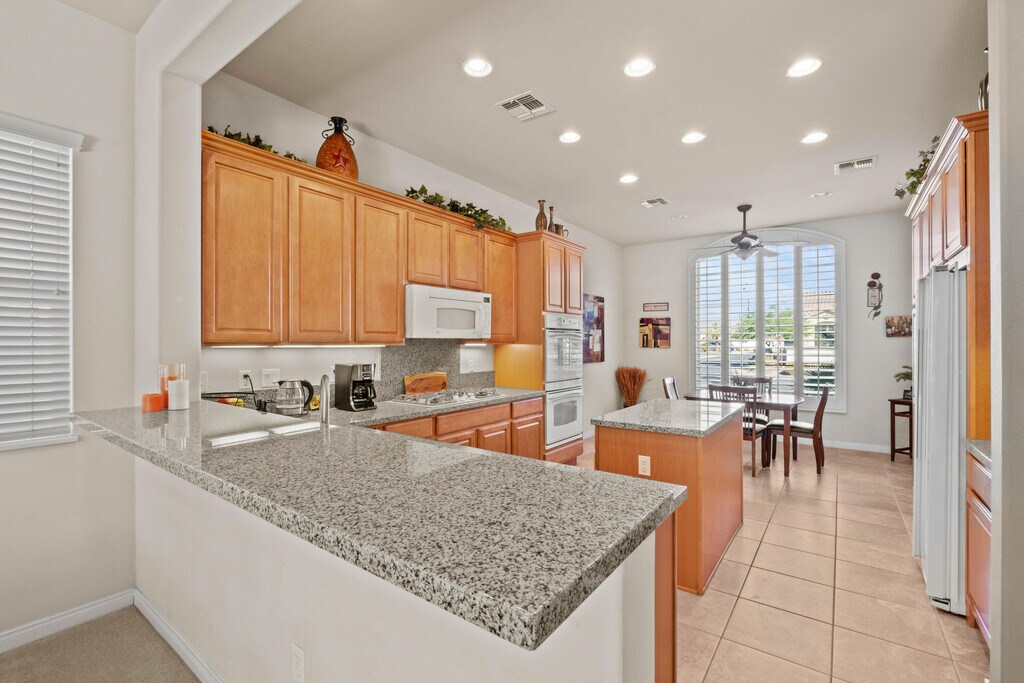 Seasonal Rental! You are going to want everything this extraordinary San Benito plan has to offer! It was built on a huge corner lot with a highly desirable South facing backyard. South facing is the most sought after direction in the desert because the warm winter sun is present on the patio all season,and the sunsets & lingering twilight skies are spectacular! This spacious home features 2 bedrooms,2 baths,a den,a bonus room next to the den,and a 2 car plus golf cart. The kitchen has granite countertops,high quality cabinetry,and a nearby breakfast nook. The master suite has back patio access,a large walk-in closet,and a separate tub and walk-in shower. Sun City Shadow Hills is a 55+ community that has 24-hour gate guarded security,two 18-hole golf courses,two clubhouses with swimming pools,fitness centers,and so much more! Furnished and ideal location! . Summer rate $2700. In Season rate $4900. Leased 11-1-25 - 3-31-26.