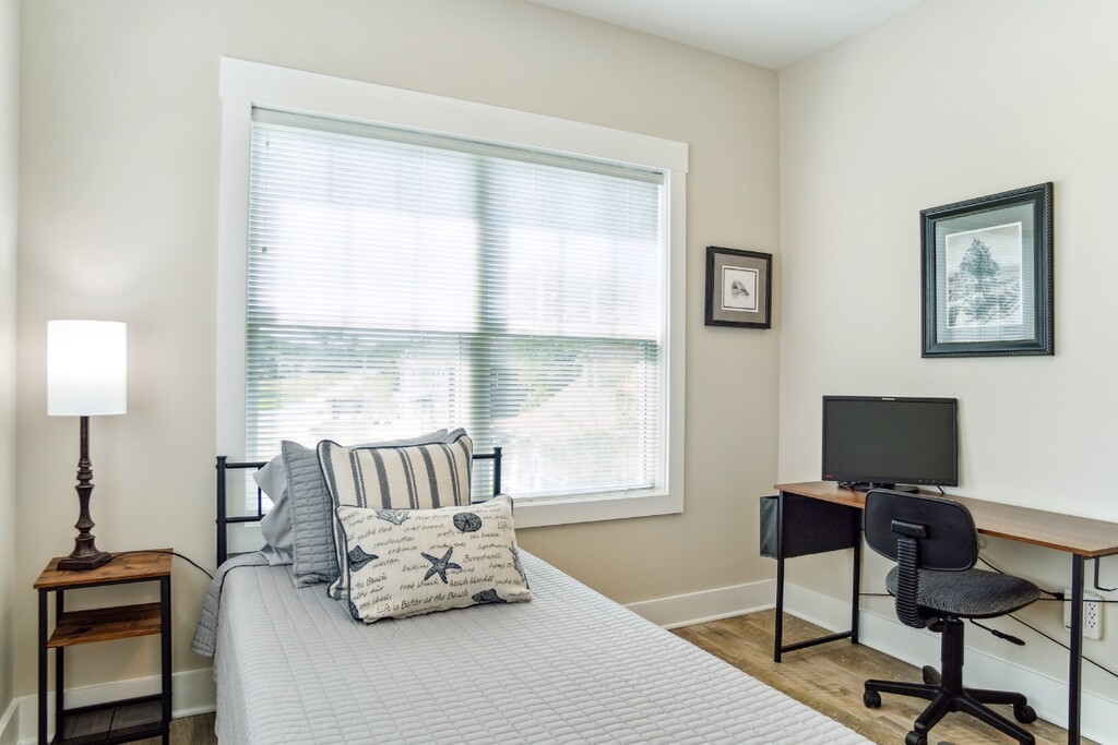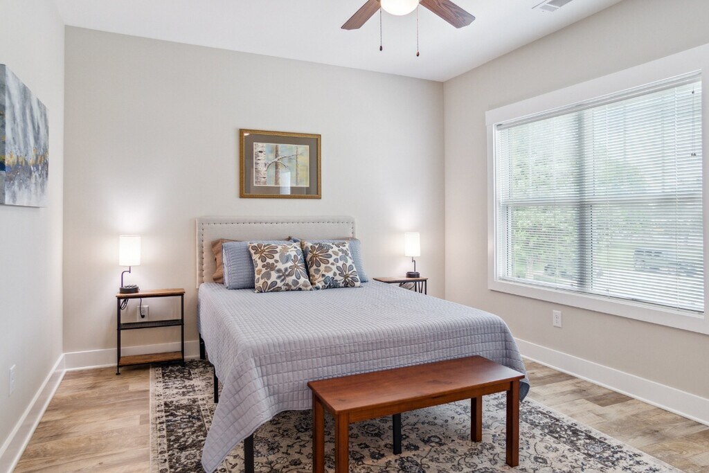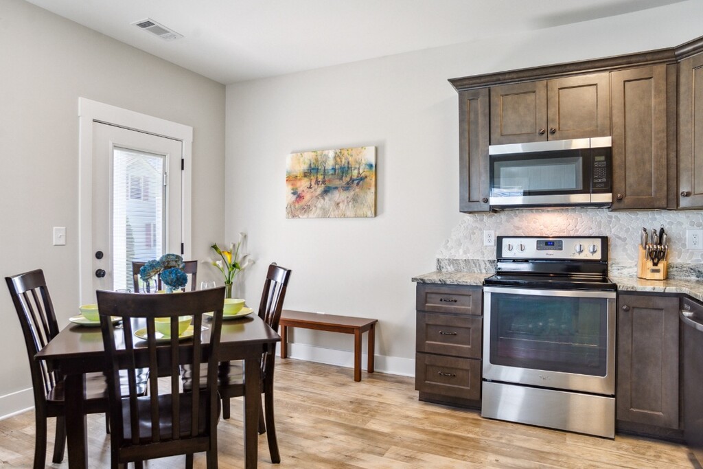 -THIS IS A 30+ DAY, DOG-FRIENDLY, FURNISHED RENTAL Welcome to your home away from home. This special end-unit townhome has its own private entry, front patio, and a one-car garage. The fully furnished interior space was designed by the owner/artist to coordinate with one of her beautiful paintings. -Dog-friendly (at the owner's discretion) -Fully outfitted kitchen -Dedicated workspace -Free AT&T fiber -Garage parking -Must be 21 to rent this home -Not suitable for infants or small children -Non-smoking/vaping unit This fabulous, 3 BR 2.5 BA townhome is located in a small community of only 9 homes. It includes a garage and 2 extra parking spaces and was built in Oct. 2020. The interior is modern open-concept, with 9ft ceilings, luxury vinyl plank flooring, extra storage space, and tons of natural light. The kitchen is equipped with pots and pans, utensils, bakeware, a toaster, a Keurig, a convection oven, stainless steel appliances with granite countertops, and a stunning sliced stone tile backsplash that finishes at the ceiling. The dining area is connected to the kitchen and seats four normally, but a chair can be removed and the provided bench seat can be added to cozily seat five. The new and modern living room comfortably seats 5 and has a 40-inch Roku tv on a fully movable wall mount so you can position the tv perfectly for your viewing and streaming pleasure. All the bedrooms are upstairs with a sizeable linen closet and 2nd shared bathroom. They all have new memory foam mattresses, comfy pillows, double-hung closets that have three-drawer dressers, hangers, extra sheets, and blankets, (not that you would need blankets in the summer). The spacious master bedroom has original artwork, a queen bed, and a walk-in closet with a window for lots of natural light. The on-suite bath has double sinks, and an extra-large tub, for long relaxing soaks after a busy day. The second bedroom features original artwork and a queen bed. The third also has an original piece of art, a twin bed, and a desk with a monitor to make any necessary work more pleasurable. This home is in close proximity to: -.1 The Jimmy Floyd Fitness Center -.1 miles to a walking trail -.2 miles to Lebanon Dog Park and agility course -.6 miles to Don Fox Park, - 1 mile to Lebanon Town Square - 2 miles to Vanderbilt Wilson County Hospital -2 miles to Cumberland University -3.6 miles from I-40. -32 miles to Nashville