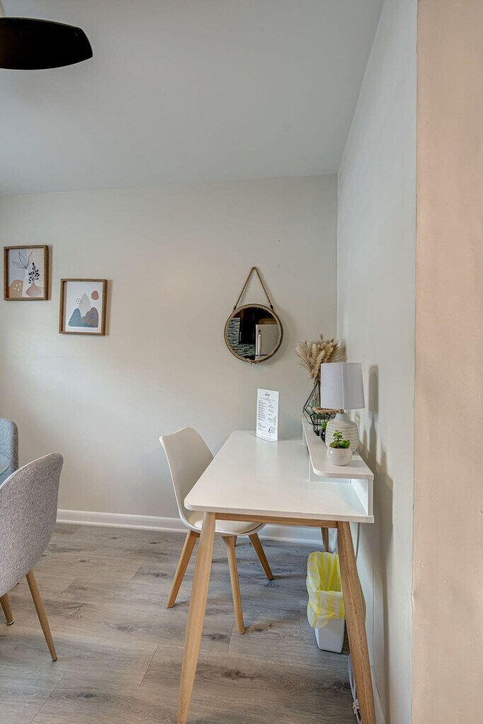 Welcome to this Melrose condo, located on the first floor of a 2-story restored historic hotel. While the building is aging, feel at home in this budget-friendly condo that is hard to beat for the location and price. This 420 sq ft condo works perfectly for 2 to 4 people and includes a king-size bed, sofa bed, table and chairs, a TV with cable, stainless steel appliances (no dishwasher), and an all-in-one washer and dryer. Towels and linen, travel-sized toiletries, a hairdryer, iron, and ironing board are provided. A drip coffee maker and basic kitchenware are also provided. Guests are responsible for providing any additional amenities desired such as additional toilet paper. Free Wi-Fi and free on-site parking are available. The pool is open Memorial Day to Labor Day. Walk to great local eateries, cafes, and bars within a 5-minute walk just North or South of the condo on 8th Ave. Rideshares from Uber, Lyft, and Earth Rides are readily available. The MTA buses run all over Metro Nashville, and Nashville’s bicycle sharing program is also available. The studio complex was built in the 1950s and its age is starting to show. There is potential for noise as the complex is located in an urban area and you will have tenants above and beside you. Quiet hours are from 10 PM to 7 AM, and a second noise complaint may result in removal from the property without refund. Registration Number: 2022-12-30-404 [SI]