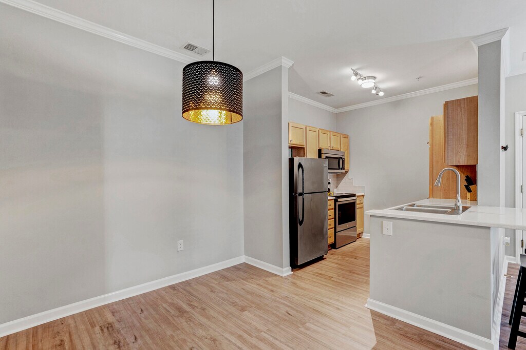 Fully Furnished Gorgeous 2nd floor condo in the heart of Raleigh in the highly desired Atlantic Place II neighborhood. Blackout curtains, new Luxury Vinyl Plank, Hisense 55" Class - A65K Series - 4K UHD LED LCD TV and ROKU 4K box in living room, Electric fireplace with heater, Casper Queen size mattress as well as Quartz countertops in kitchen. Amenities included: Secured entrance with keypad code, plenty of parking, balcony with deck faces west, central heat/air, dishwasher, stainless steel appliances, updated kitchen, large master closet, washer/dryer in unit, new coffee maker, utensils, pots/pans. Utilities included: Spectrum internet/wifi, electricity, heat, air conditioning, trash pickup and water. This is a safe, quiet neighborhood. Neighborhood is Inside The Beltline and close to Crabtree Valley Mall(4.6 miles), Iron Works(1.1 miles), Downtown Raleigh(3.5 miles), Crabtree Creek Trail Head(.8 miles), Costco(1 mile), Wegmans(1 mile), Trader Joe's(1.3 miles), North Hills(2.8 miles), RDU Airport(18.4 miles) and multiple restaurants. Centrally located to the following hospitals: Duke Raleigh Hospital 1.7 miles/6 minutes WakeMed Raleigh Medical Park 5.0 miles/10 minutes WakeMed North 7.1 miles/14 minutes UNC Health Rex Health Hospital 8.3 miles/13 minutes NO smoking of any form anywhere in the community. 30 day minimum stay required by HOA. Rent: $1975/month- Refundable Security Deposit: $1000- Move Out Fee: $200