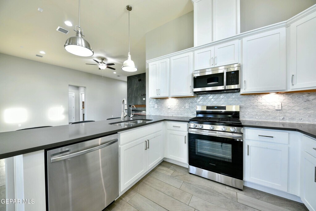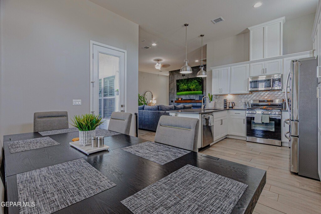 Stunning Single Level Home recently built (December 2022) and Pet Friendly. Beautifully maintained & lovingly cared for,this 4 Bedroom/2 Bath Home looks amazing & has that feel of ''new''. Great Room has a Stunning Fireplace on a Custom Accent Wall; Open Living Area w Bar/Counter Sitting,Formal Dining,Kitchen w Granite Counters & Stainless Steel Appliances plus an abundance of Natural Light via custom Windows & 2 Patio Doors that lead to a Covered Patio that steps out to a Magnificent Back Yard; an Entertainment Paradise for Family & Friends w highly Customized Fabrication & Professional Landscaping of the entire Design. Peaceful Location only couple of minutes to I-10,this home rests on a Corner Lot w no neighbors to one Side & none to the Back,Refrigerated AC for your comfort,well designed & highly utilitarian Laundry Room,Dbl Garage with Closet & Storage,Beautifully Designed Curb Appeal plus a huge Parking Area for a Large RV. Custom Fencing & Lighting are an added benefit to your peace & comfort.