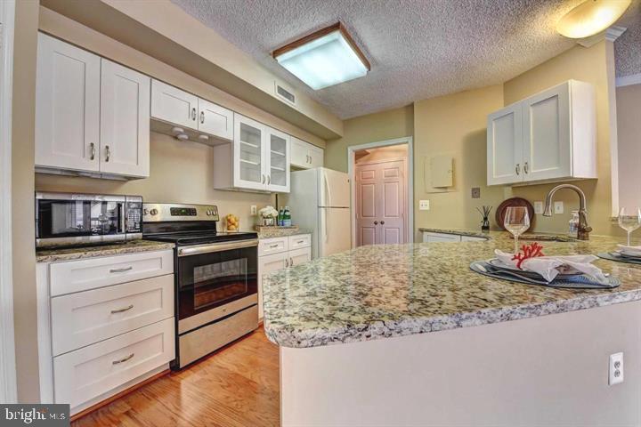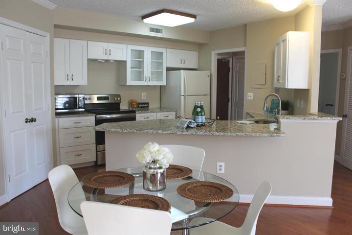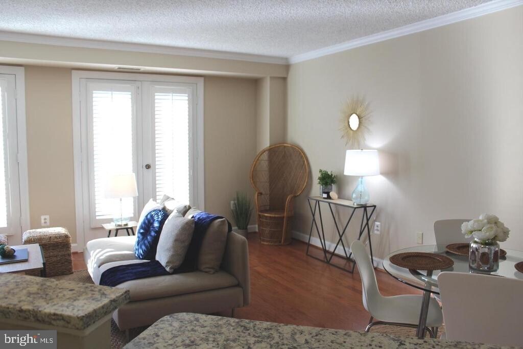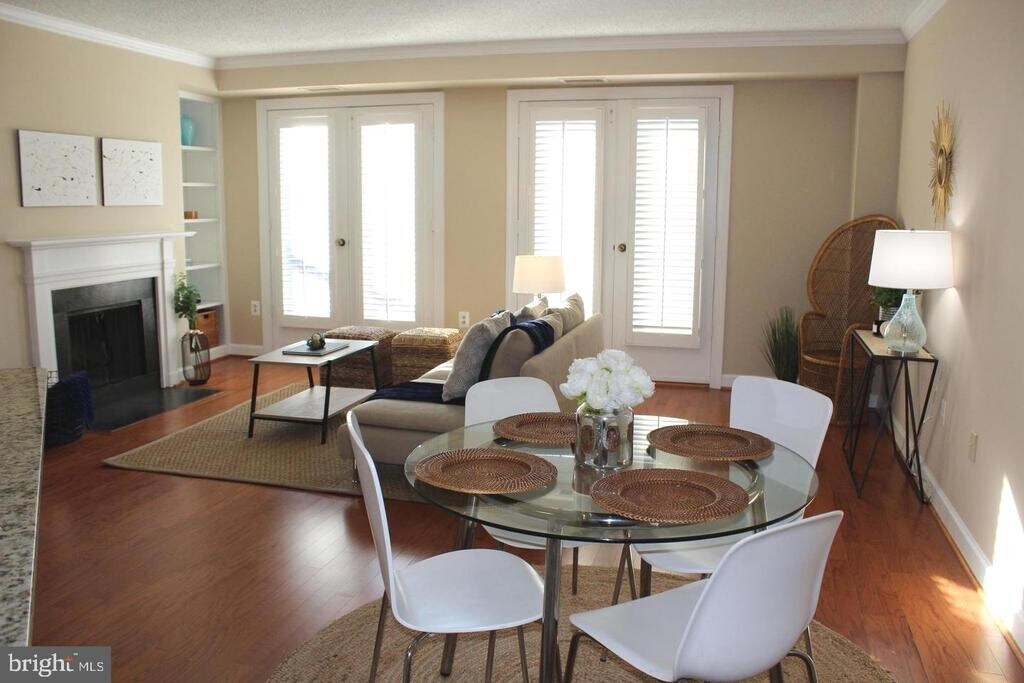 Welcome to this elegant and spacious 1-bedroom, 1-bath condo in the highly sought-after Southeast Quadrant of historic Old Town Alexandria. Offering over 800 square feet of living space, this open-concept home combines modern updates with timeless charm. The living area features gleaming hardwood floors, built-in bookcases, and a cozy wood-burning fireplace, while French doors open to a private balcony overlooking the courtyard and pool. The updated kitchen showcases granite countertops, a peninsula bar, and seamless flow into the main living space—perfect for entertaining. The serene primary suite includes plush carpeting, plantation shutters, and a custom walk-in closet. A beautifully updated bathroom, in-unit washer and dryer, and thoughtful storage solutions add convenience. Enjoy peace of mind with secure garage parking (space #48 located right at the entrance), direct entry from the garage into the building, newer A/C, and a large storage unit on the first floor. Community amenities include a swimming pool, renovated patio spaces, garage bike storage, and secure common areas. All of this is just steps from the Potomac River, waterfront parks, trails, restaurants, shops, and the vibrant heart of Old Town. This condo blends comfort, convenience, and charm in one of Alexandria’s most desirable neighborhoods. Landlord will require first months, last months, security deposit upon acceptance. Tenants must have 720 credit score or above.