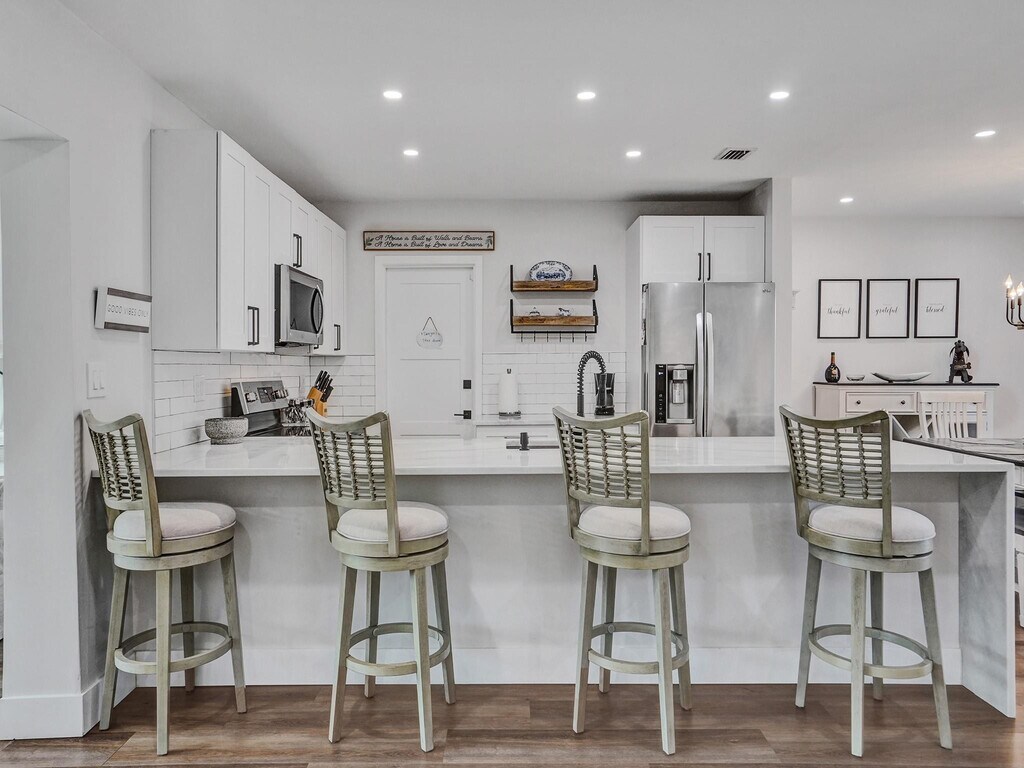 Indulge in coastal luxury with this impeccably renovated home,enveloped in lush landscaping and boasting apristine paver driveway and impact windows for added elegance and security. Discover two spacious bedrooms,two baths,and an inside laundry room for effortless living. The allure continues with a sleek over sized one-cargarage and a gourmet kitchen adorned with stainless steel appliances and quartz countertops. Just 10 blocksfrom the ocean,this residence is a dream for beach lovers. With vacation rental potential and negotiablefurnishings,plus no HOA fees,it's a sanctuary of opulence and convenience. MLS ID F10542195