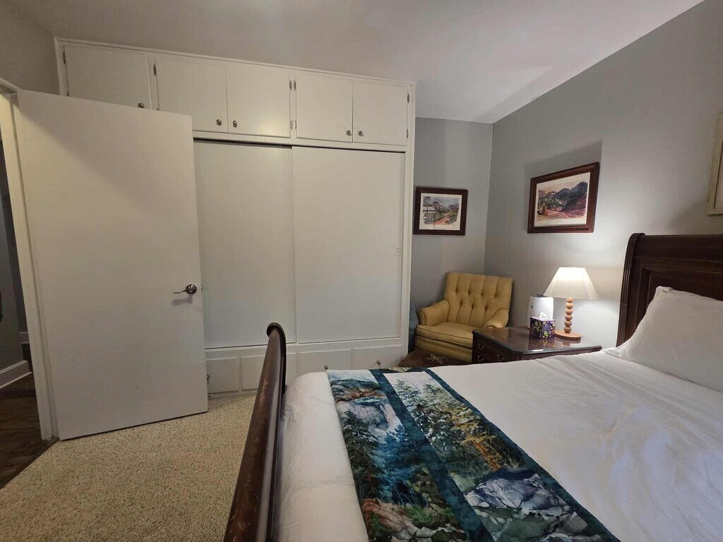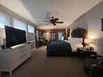 Nestled at the end of a quiet cul-de-sac in Manhattan, this beautifully laid-out 4 bedroom, 2 bathroom home offers space, privacy, and comfort. The kitchen is generously sized with abundant cabinet storage and plenty of room to cook and gather. The open-concept living and dining area creates a welcoming atmosphere, complete with a cozy fireplace and a tucked-away office nook on the opposite side — perfect for working from home. Three additional bedrooms are well-sized, featuring built-in drawers and ample closet space. One of the spare rooms offers extra space, a large walk-in closet, and direct access to the backyard patio. The main hall bathroom is conveniently located and easily accessible from the secondary bedrooms. The spacious primary suite includes its own private bathroom, beautifully finished in tile for a polished, upscale feel. Large windows throughout the home flood the space with natural light. Backing up to a wooded area, this property offers exceptional privacy and a peaceful outdoor setting. This home combines functionality, space, and a serene location — a must-see rental opportunity!