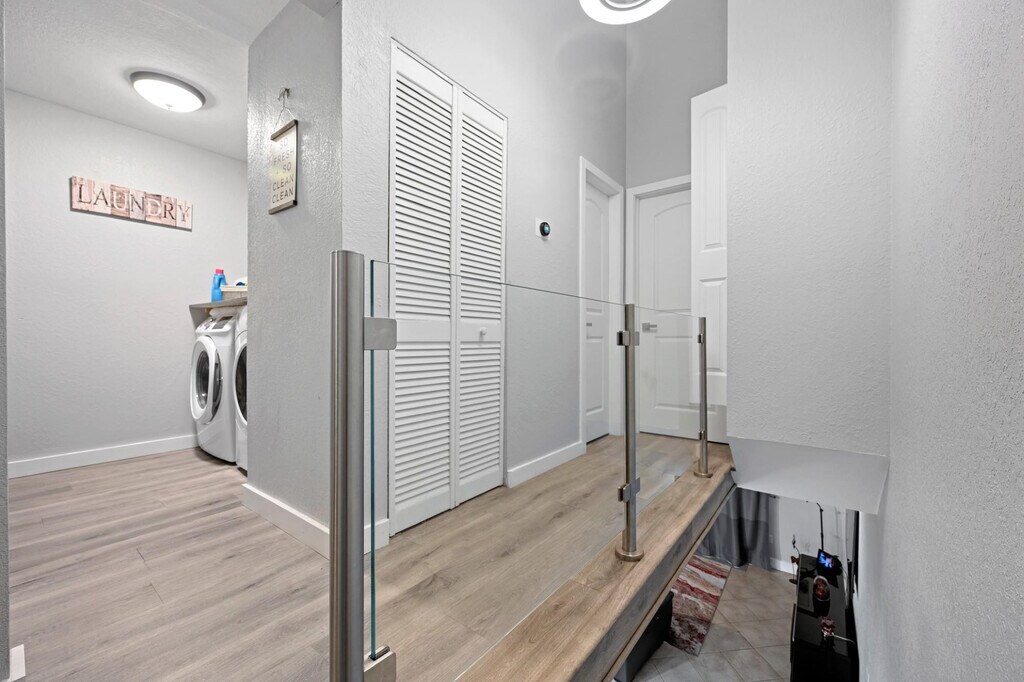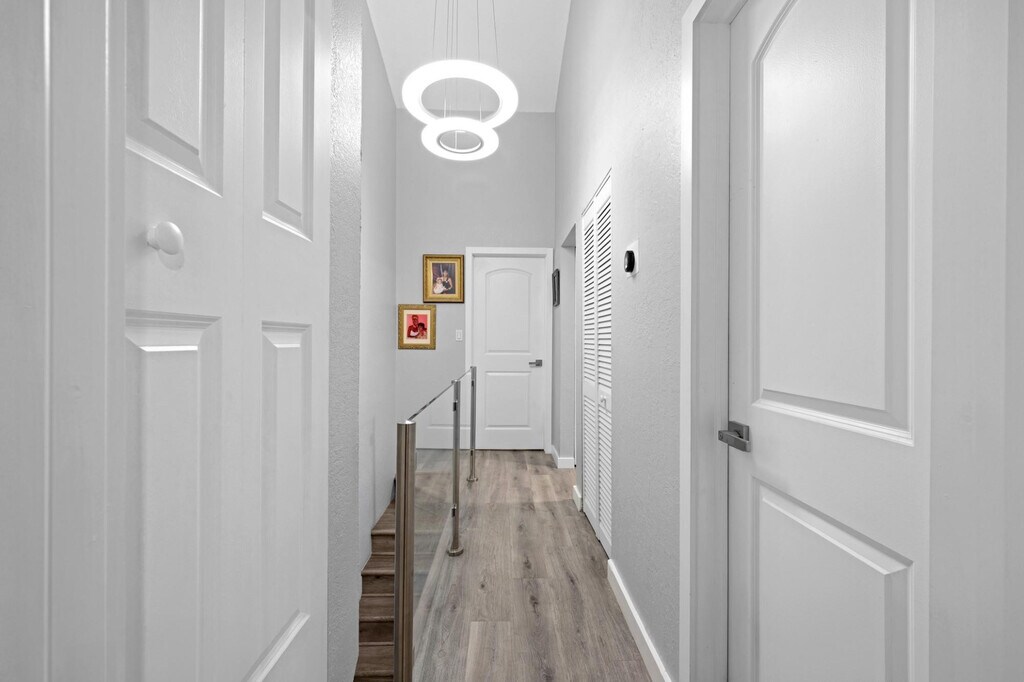 Welcome to Paradise. Beautiful upgraded 2bed /1.5 bath townhouse in The Gardens at Kendale Lakes. Downstairs has ceramic tile throughout,the upstairs and hallway has wood laminate. Beautiful stair rail with see through glass on 2nd floor. Upgraded kitchen with high-end appliances. Ample dining/living room combination. Plenty of closets. Half bath downstairs and full bath upstairs fully upgraded. Spacious bedrooms. Laundry room with large washer and dryer on the 2nd floor of the unit Front private porch and large fenced patio. Accordion hurricane shutters. EV electric car hook up accessible to your parking space which is directly in front of the unit. MLS ID F10531545