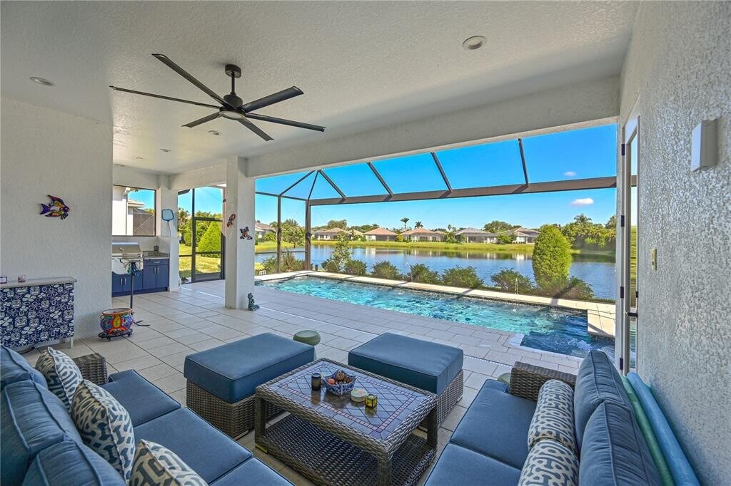 Experience resort-style living in this beautifully maintained 3-bedroom,2-bathroom home located in the gated community of Sandhill Lake. This home combines elegance,functionality,and comfort with an open-concept floor plan and tile flooring throughout. The upgraded kitchen features extended cabinetry,an oversized island with additional counter space,a beverage fridge,and premium appliances—perfect for both entertaining and everyday living. The spacious living room flows seamlessly to the outdoors through pocketing sliders that open to a stunning extended lanai. Relax and unwind while taking in serene water and preserve views through the panoramic pool screen,designed for minimal obstruction and maximum enjoyment. The outdoor space also includes Shellock deck pavers,an outdoor kitchen,and an expanded sun area. The gas-heated pool (heater installed just one year ago) ensures year-round enjoyment. The primary suite offers a true retreat,featuring two expansive walk-in closets,a walk-in shower,and dual vanities for added comfort and convenience. Additional features include impact-resistant hurricane windows and doors throughout,and a 220V EV charger outlet in the garage. Residents of Sandhill Lake enjoy the convenience of maintenance-free living,with HOA fees covering yard maintenance (including mulch and weeding),gated entry,a community pool and spa,and a clubhouse for social gatherings. Conveniently tucked away in an exclusive community along Clark Road,this home provides a tranquil oasis in the exciting paradise of Sarasota. Enjoy all that this vibrant coastal city has to offer,from world-class beaches like Siesta Key and Lido Beach to the arts and culture of downtown Sarasota. Explore boutique shopping and dining at St. Armands Circle,catch a performance at the Sarasota Opera or Van Wezel Performing Arts Hall,and take in the natural beauty of nearby parks and preserves. Just a few miles away,University Town Center (UTC) offers premier shopping,diverse restaurants,and year-round community events. With top-rated golf courses,year-round sunshine,and a lively waterfront lifestyle,Sarasota truly has something for everyone. This home is ready for you to move in and enjoy the Florida lifestyle at its finest. MLS# A4685116