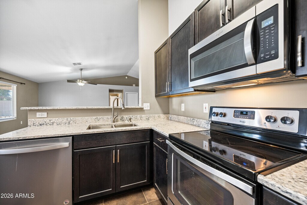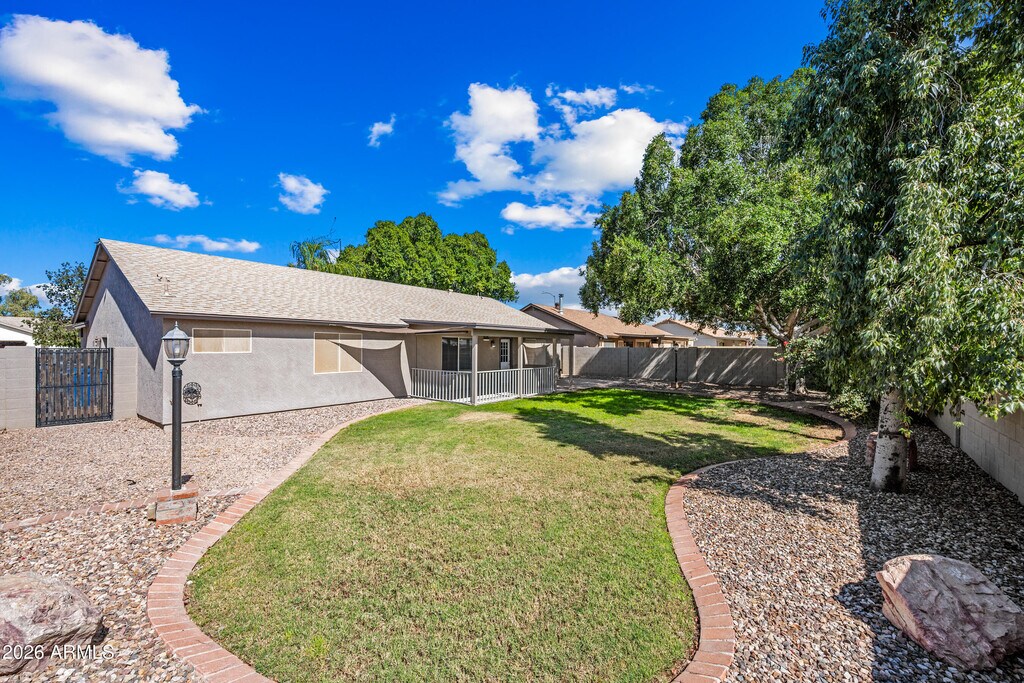 Lovely 3 bedroom 2 bathroom home for rent in an established neighborhood in east Mesa. Open floor plan with lots of windows to let the natural light in. Vaulted ceilings. Eat in kitchen with loads of cabinets for lots of storage. Large primary bedroom with full private bath and a walk in closet. Huge backyard with mature trees and a grassy lawn. Pets welcome with approval. $25/month pet rent.