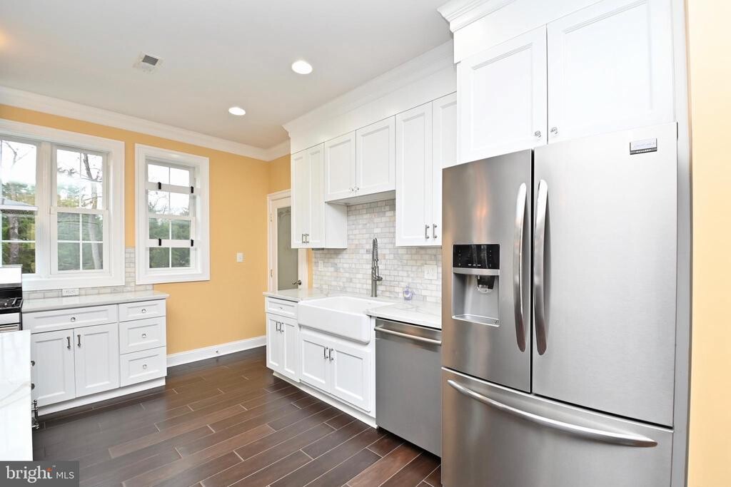 Home completely rebuilt 2017 with almost 3000 sq ft of Living Area. 10 ft+ ceilings, 5 Large Bedrooms 4 Full Baths. Hard to find such a fully expansive level fenced yard. Enjoy the Stamped Concrete Walkways, Patio sitting area/ Family Picnic area great for entertaining. Home has two Covered Decks, one front and one off Family Room. In addition there is a large exterior deck measures 10x29 with step down to backyard. Gourmet Kitchen has all Stainless Steel Appliances, all upgraded. outside vented gas cooking and gas heat, Huge walk in lighted pantry, marbled granite counters. Breakfast Bar in Family Room allows for openflow family time. Home has all hardwood and ceramic floor for easy care. Living Room has a two way gas fireplace. Full sized Washer and Dryer are on main level. No more waiting for the shower to warm up, tankless water heater is so nice. 2 Car Garage has back door entry as well as remote controls. Sufficient parking for 4 more cars on extended driveway. Extra frig in garage stays. Going upstairs there is a Luxury master bath with custom ceramic tiled medallioned floor, Shower Towered glass enclosed shower and Jetted soaking tub. MBR BA also features double bowl sinks. MBR closet custom built in shelves. Custom wrought iron railing on staircase lead to open landing at top of stairs. Home is walking distance to INOVA Mount Vernon Hospital, Rt One Jefferson Davis Hwy 1/4 Mile and direct bus route to 1900 Penn Ave 13 Miles away, Huntington Metro 8 min away, Old Town Alexandria 10 minutes or less Fort Belvoir Army base 5 miles from front door Pictures shown when home was recently vacant.