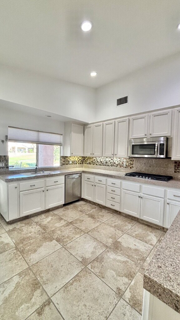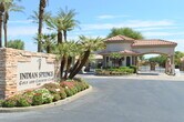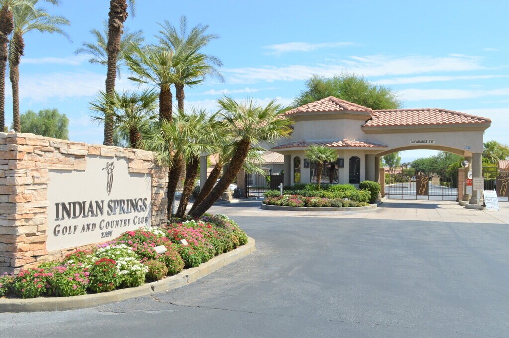 The Indian Springs gated, public golf-course community is conveniently located near La Quinta, Coachella, and Indian Wells in Indio, California. Local entertainment performs at The Big Rock Pub on the golf course's 18th green for a memorable dining, drinking, and music experience while you enjoy fantastic sunset views by the fire pit or a game of pool. This home is entered via a private front courtyard and has a view of the 7th tee from the private pool and spa. It is also conveniently located one block from the Resident's Club for gym and community pool use. Highlights include and an open floorplan with tiled floors throughout, gas fireplace between the living and dining spaces, separate laundry room with access to the attached garage. The kitchen has a breakfast bar, stainless appliances and access to the rear covered patio and private pool/spa! There are 3 bedrooms--2 with full-bathrooms attached--and a half guest bathroom. Available as a long-term rental for one year or more Move in costs include rent, security deposit equal to one month rent, and $100 for portal set-up. Small pets considered. PMI Coachella Valley, DRE #01992806. Please call for a showing at . Jan Cox, DRE #02054367