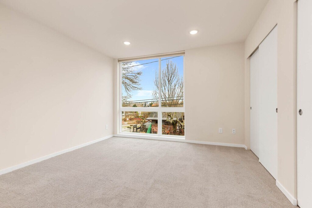 Discover this stunning 3-bedroom, 2-bathroom home in the highly desirable Leschi neighborhood, thoughtfully designed with modern architecture and everyday comfort in mind. Step inside to an open floor plan filled with natural light, creating a warm and inviting atmosphere. The living area features a cozy electric fireplace which sets the perfect ambiance, while the contemporary kitchen offers a spacious peninsula with seating, a 5-burner gas range, built-in microwave, newer appliances, and ample storage. Upstairs, you’ll find two bedrooms, a full bath, and convenient in-home laundry. The top floor is dedicated to the primary suite, complete with a large walk-in closet and a spa-like bathroom with double sinks and a walk-in shower. Enjoy breathtaking mountain and territorial views from your private rooftop deck—perfect for morning coffee or evening gatherings. Additional features include A/C and one dedicated parking space. Blending modern design with comfort and functionality, this home is the perfect retreat in one of Seattle’s most sought-after locations. 12 month lease is okay but 16-18 is preferred Required Resident Benefit Program for an additional $36.50 per month. Program details and benefits can be found at