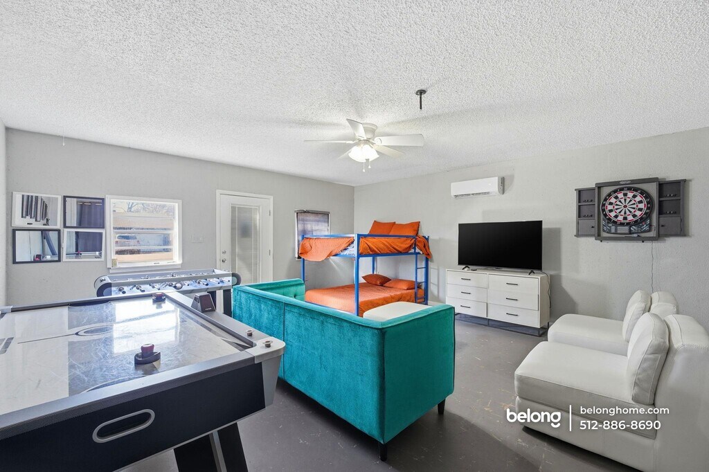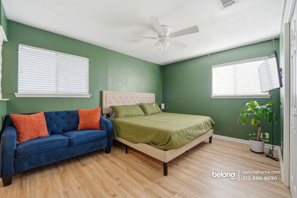 With four bedrooms and a practical single-bath layout, this home offers the space and structure that support everyday routines. An open living area connects naturally to the kitchen and dining space, creating a setup that works well for shared meals, homework time, or relaxed evenings together. The kitchen features generous counter space, bar seating, and stainless steel appliances, with sightlines into the living area that make it easy to stay connected while cooking or gathering. An adjacent dining space allows for a full table, while the nearby in-home laundry adds day-to-day convenience without taking away from living areas. All four bedrooms are positioned to give flexibility for sleeping arrangements, a home office, or a playroom. The primary bedroom offers comfortable proportions, natural light, and direct access to the bathroom, keeping mornings organized and simple. Located in South Austin, the neighborhood offers quick access to everyday essentials and outdoor time. Grocery runs are easy with nearby H-E-B and Central Market, while local favorites along South Congress and St. Elmo provide dining and coffee options close to home. Outdoor recreation is close by at Garrison Park and Mary Moore Searight Metropolitan Park, offering trails, open green space, and room to unwind without leaving the area. *Fireplace is for decorative use only and cannot be used without consent from Belong. *Our homes come as-is with all essentials in working order. Want upgrades? Request it through the Belong app, and our trusted pros will take care of the rest!