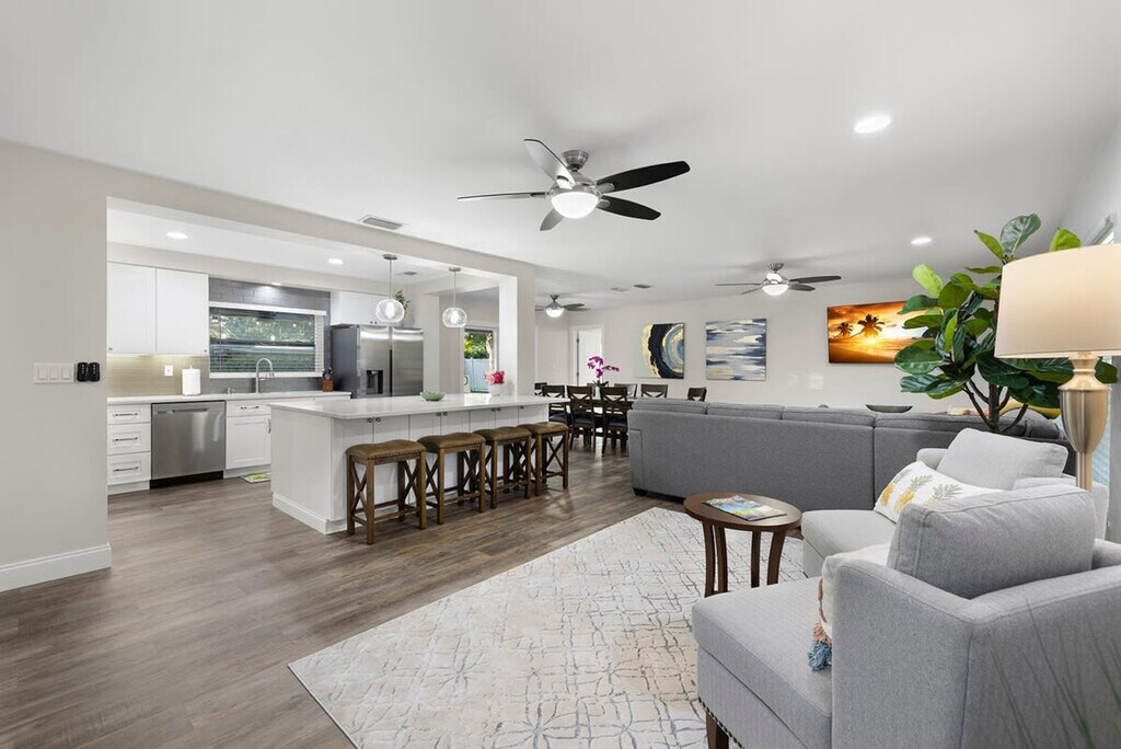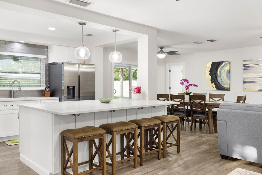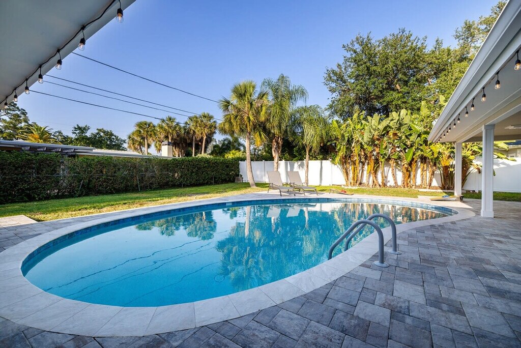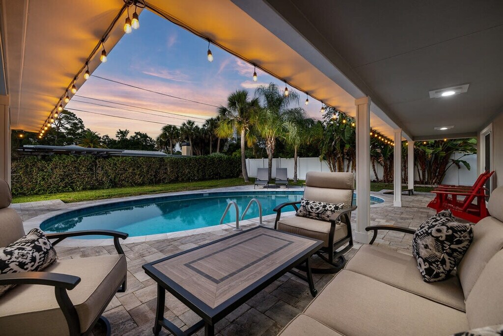 The advertised rate of $6,163/month is the lowest available price, based on a 30 day(s) stay with a move-in date of May 2, 2026. Rates vary depending on the duration of stay, season, and other parameters. For exact pricing and additional pricing components, please visit our website and enter your desired move-in and move-out dates. The rate is applicable when billed upfront; it can be higher if billed in multiple payments. Feel at home in this Largo escape, which has everything you need for your dream vacation to Florida. This 3-bedroom, 2-bath home sleeps 8 and is newly renovated as of April 2023. The home features a spacious living room and a fully stocked kitchen with all the essentials, including a drip coffee pot and Keurig. Enjoy luxury bathrooms and beach essentials, including beach chairs, an umbrella, and a cooler. The backyard is filled with activities for all ages, including a ping pong table, life-size Jenga, and ring toss. The heated pool is available for $100 per day of your stay. Located in the heart of Largo, Florida, this home is less than a mile from a ton of restaurants, coffee shops, and grocery stores. There is one exterior camera at the garage, solely to keep track of cleaning services. If you wish to have friends or family visit past 10 pm, there is a $100 per person fee. To book this listing, you must be over 25 years old. Check-in is at 4 pm and check-out is at 10 am. The garage is off limits to guests. Pets are not allowed. [SI]