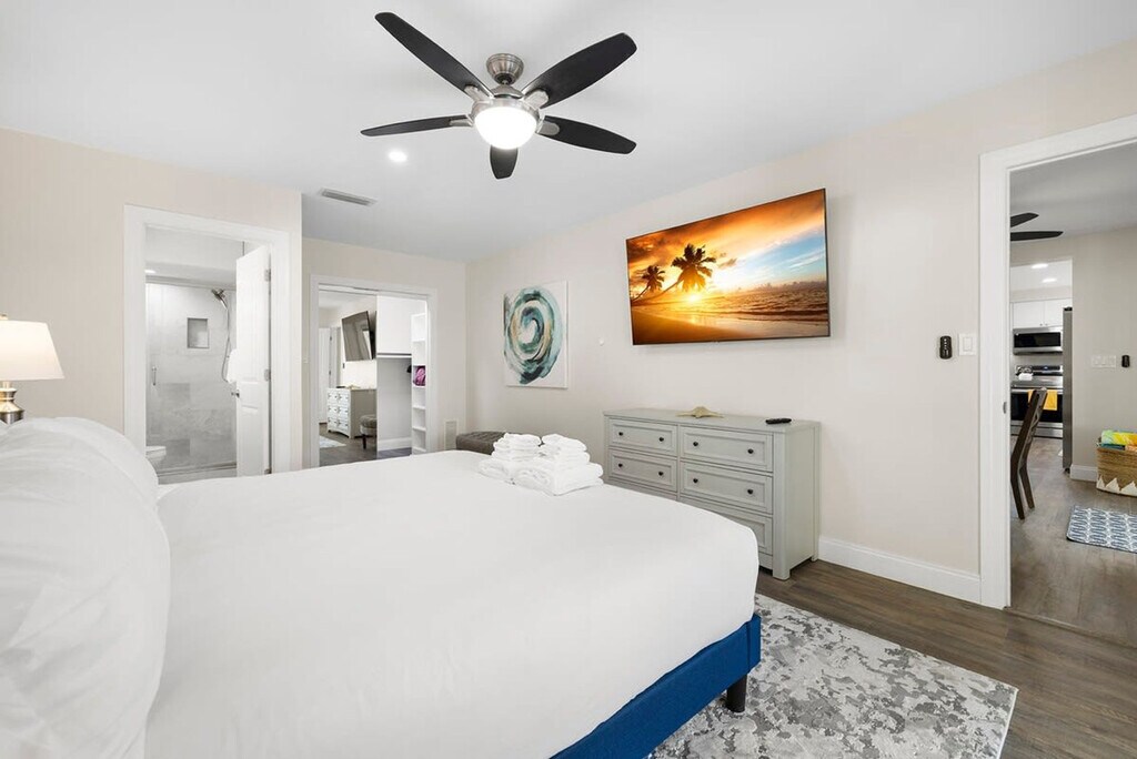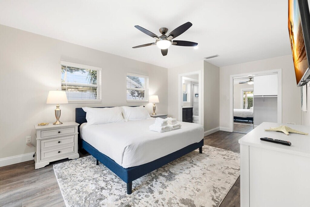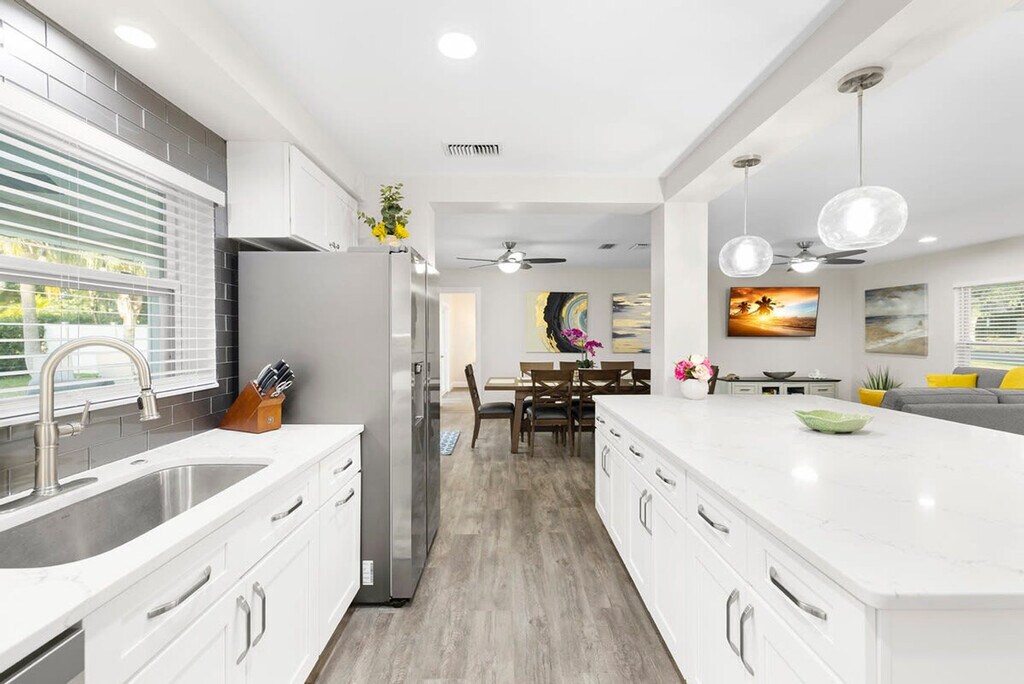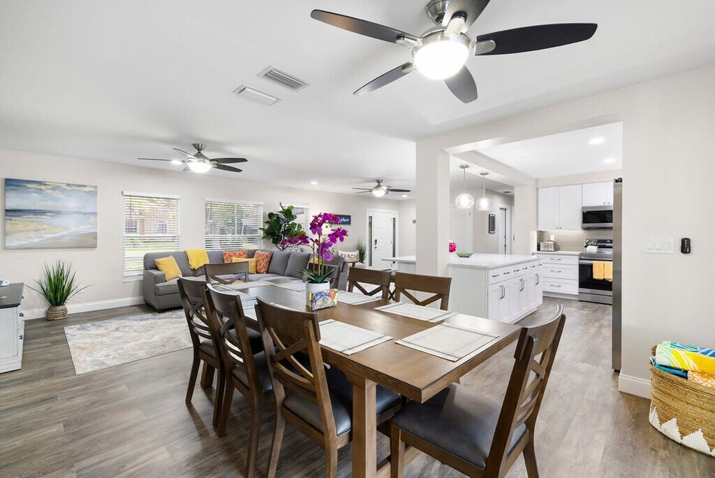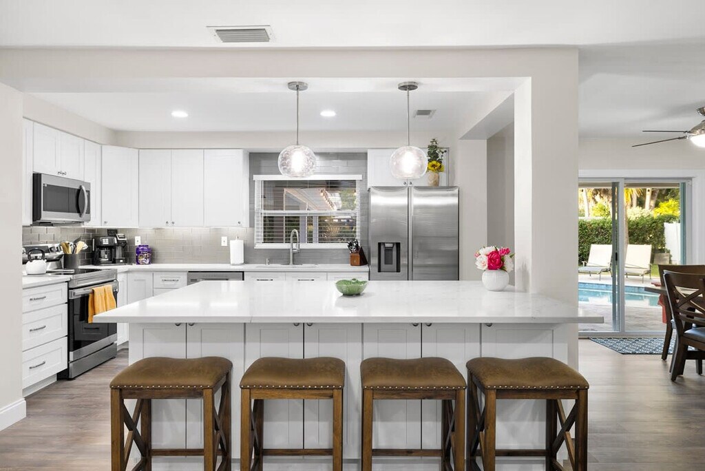 The advertised rate of $6,163/month is the lowest available price, based on a 30 day(s) stay with a move-in date of May 2, 2026. Rates vary depending on the duration of stay, season, and other parameters. For exact pricing and additional pricing components, please visit our website and enter your desired move-in and move-out dates. The rate is applicable when billed upfront; it can be higher if billed in multiple payments. Feel at home in this Largo escape, which has everything you need for your dream vacation to Florida. This 3-bedroom, 2-bath home sleeps 8 and is newly renovated as of April 2023. The home features a spacious living room and a fully stocked kitchen with all the essentials, including a drip coffee pot and Keurig. Enjoy luxury bathrooms and beach essentials, including beach chairs, an umbrella, and a cooler. The backyard is filled with activities for all ages, including a ping pong table, life-size Jenga, and ring toss. The heated pool is available for $100 per day of your stay. Located in the heart of Largo, Florida, this home is less than a mile from a ton of restaurants, coffee shops, and grocery stores. There is one exterior camera at the garage, solely to keep track of cleaning services. If you wish to have friends or family visit past 10 pm, there is a $100 per person fee. To book this listing, you must be over 25 years old. Check-in is at 4 pm and check-out is at 10 am. The garage is off limits to guests. Pets are not allowed. [SI]