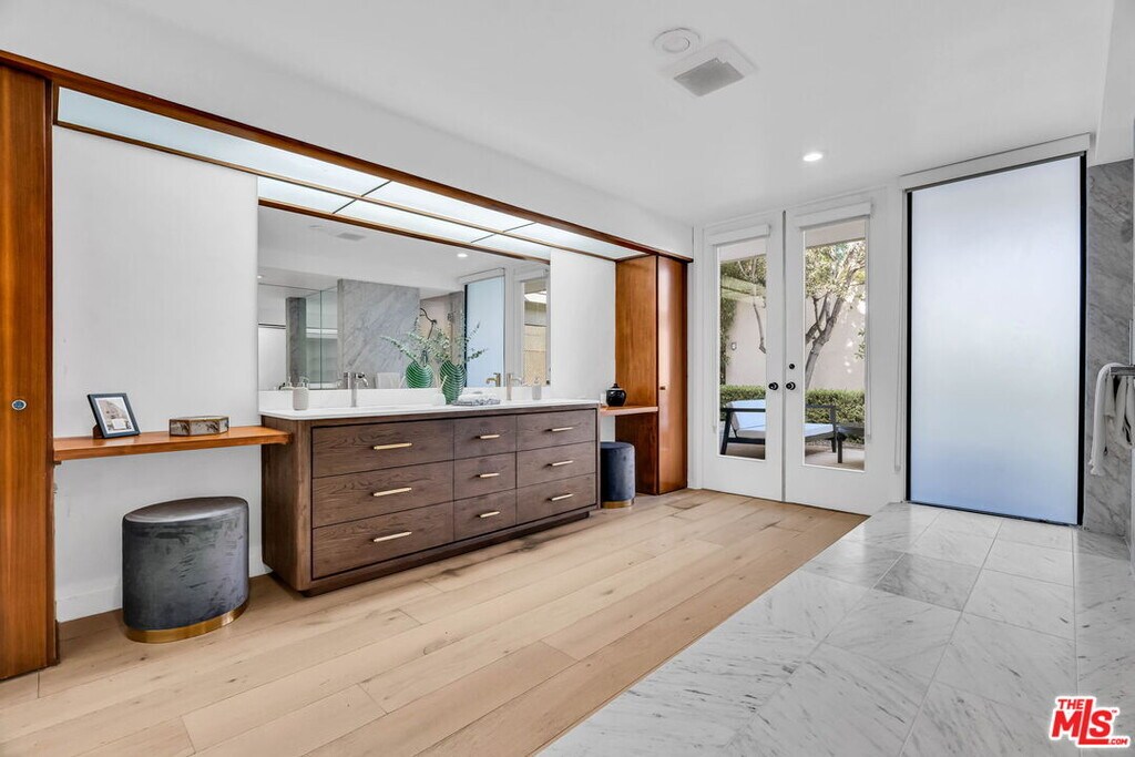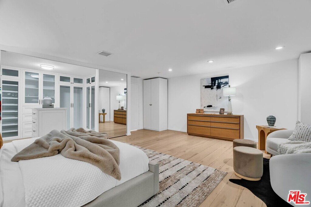 Featuring a CHAMPIONSHIP NORTH/SOUTH TENNIS COURT, this RARE SINGLE LEVEL, family home effortlessly blends timeless Mid-Century modern architecture with contemporary luxury. 5 BEDROOMS/6 BATHS. Flooded with natural light, this home features seamless indoor/outdoor flow, with floor-to-ceiling glass doors and windows that open to a private oasis complete with pool, outdoor dining and lounge areas. The spacious primary suite is a serene retreat, offering a generous walk-in closet, spa-like bath, and a private patio perfect for morning coffee or evening relaxation. This home is ideal for hosting, lounging, and living the quintessential California lifestyle. Private, sun-lit, and designed for unforgettable gatherings. One block from iconic Beverly Hills Hotel. 3 Car Garage and a circular parking for 4-5 cars. MLS# 25615857