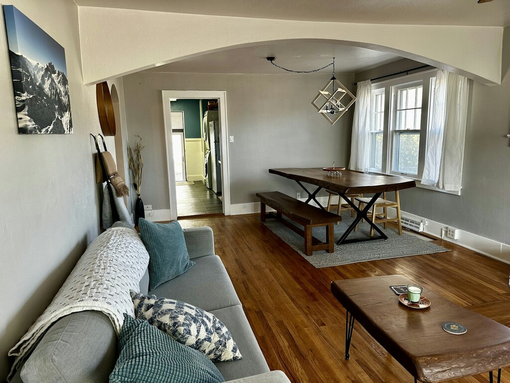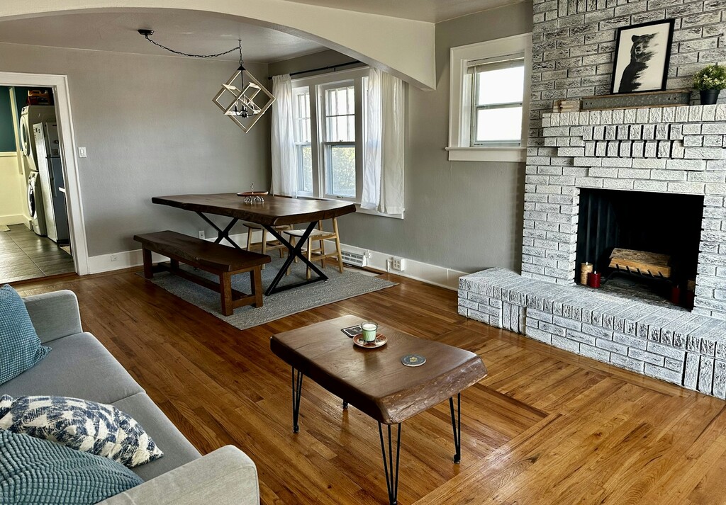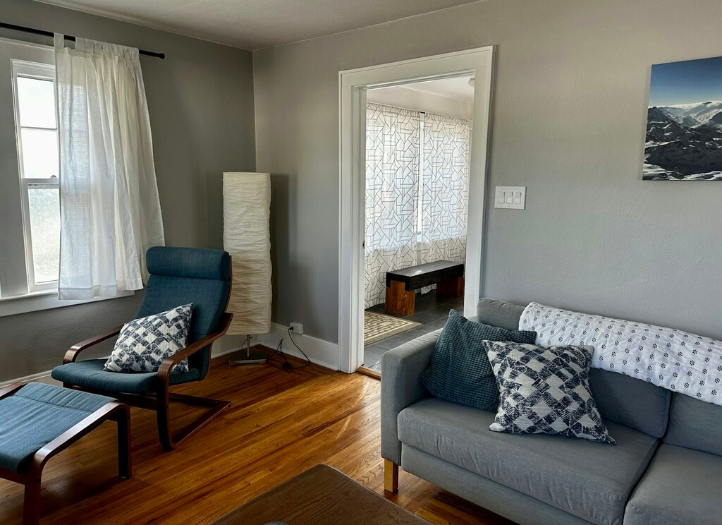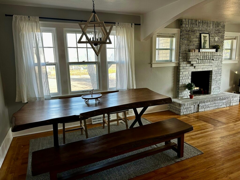 Lease term flexible. Under 6mo will be altered price. Welcome to this charming 2-bedroom, 1-bathroom home located at 802 W Pershing Blvd, in a perfect location, close to F.E. Warren, Downtown as well as Frontier Park. The home being built in the 1920s, the residence beautifully combines classic architecture with modern upgrades and comforts. Spanning 1,200 square feet, the home offers a spacious and inviting atmosphere. The space features 2 beautiful living areas, perfect for relaxing. The kitchen and bedrooms are furnished with necessities ready for use. Ample storage space, in the kitchen and throughout the home. Both bedrooms are generously sized, one full size bed and the other a queen. Original hardwood floors run throughout the property, adding character. Outside, you'll find an outdoor fireplace. - All utilities included - Garage space available - Indoor fireplace not functional - No Air Conditioning