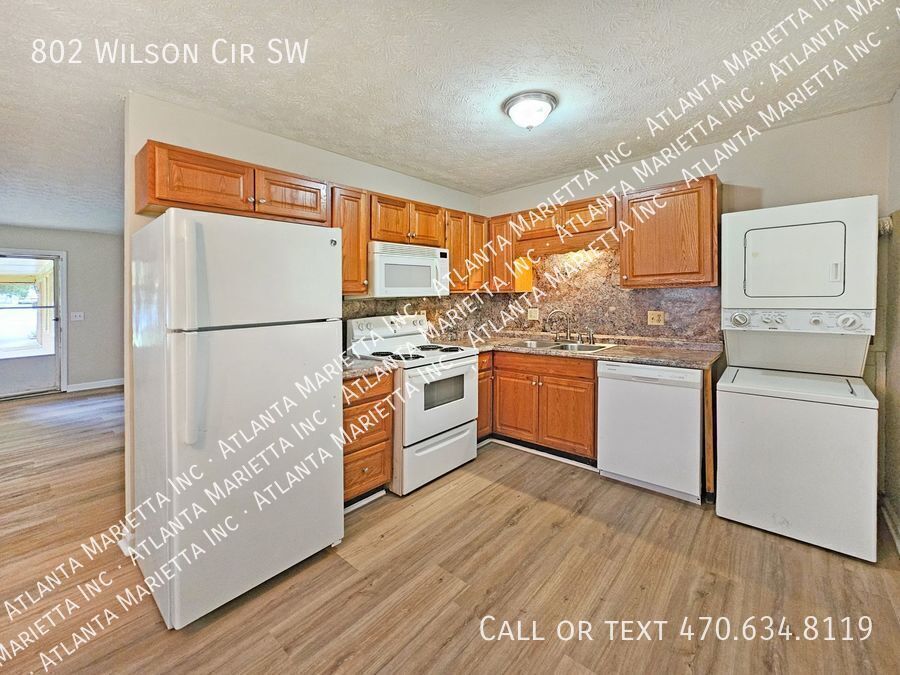 Housing Vouchers Accepted. Beautifully updated two-bedroom, two-bathroom flat in a duplex building near Marietta High School, located in the heart of Marietta. This home is set on a private, level lot, close to shopping, entertainment, and Marietta Square, with convenient access to the 120 Loop, Dobbins, Kennesaw State College (Marietta and Kennesaw campuses), and I-75. The home features a private entry with a covered porch that opens into a spacious living room. Adjacent to the living room is a dining area with seating for eight, connected to the updated kitchen. The kitchen boasts maple cabinets, ample laminate counter space, a stackable washer-dryer, refrigerator, dishwasher, and range. Down the hall, you'll find two large bedrooms and two full baths. Each bedroom is equipped with large windows, blinds, making it ideal for roommates. Additional storage is available in the outdoor shed, and the property's level lot offers privacy. We are seeking long term tenants. No pets. Housing vouchers accepted. Appliances White Bedroom On Main Laminate Counters Luxury Laminate Floors Master On Main Paint Neutral Student Friendly Washer/Dryer Window Blinds
