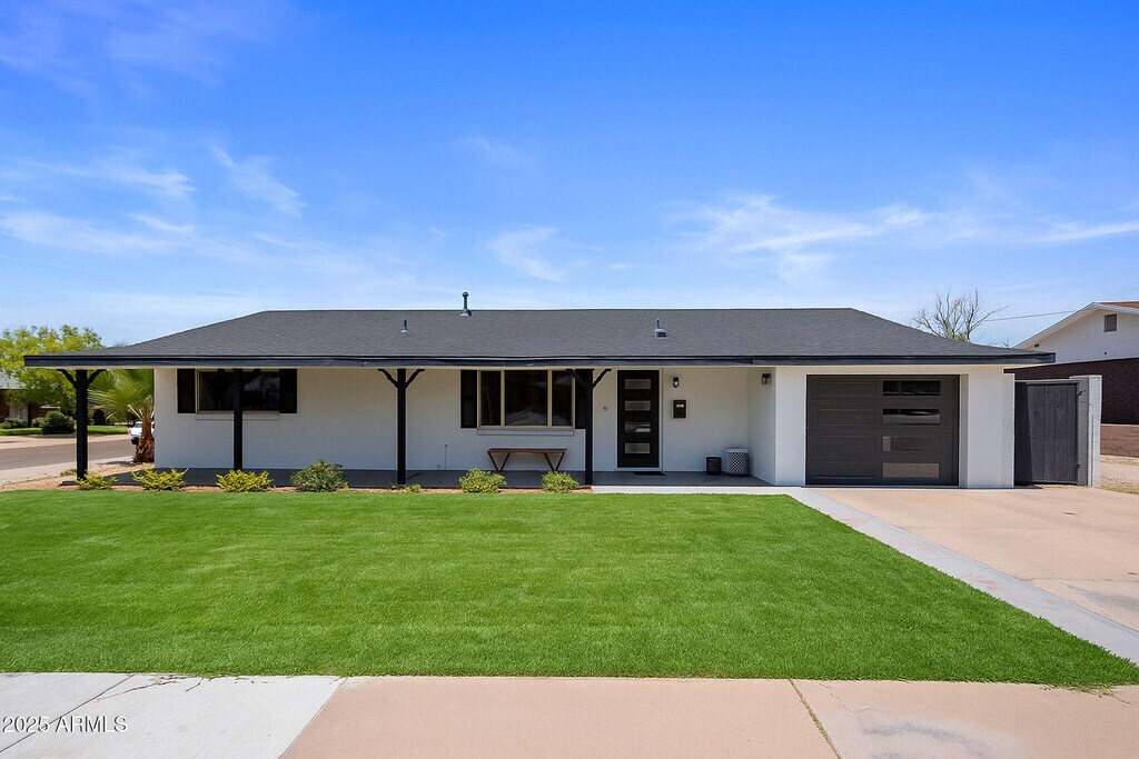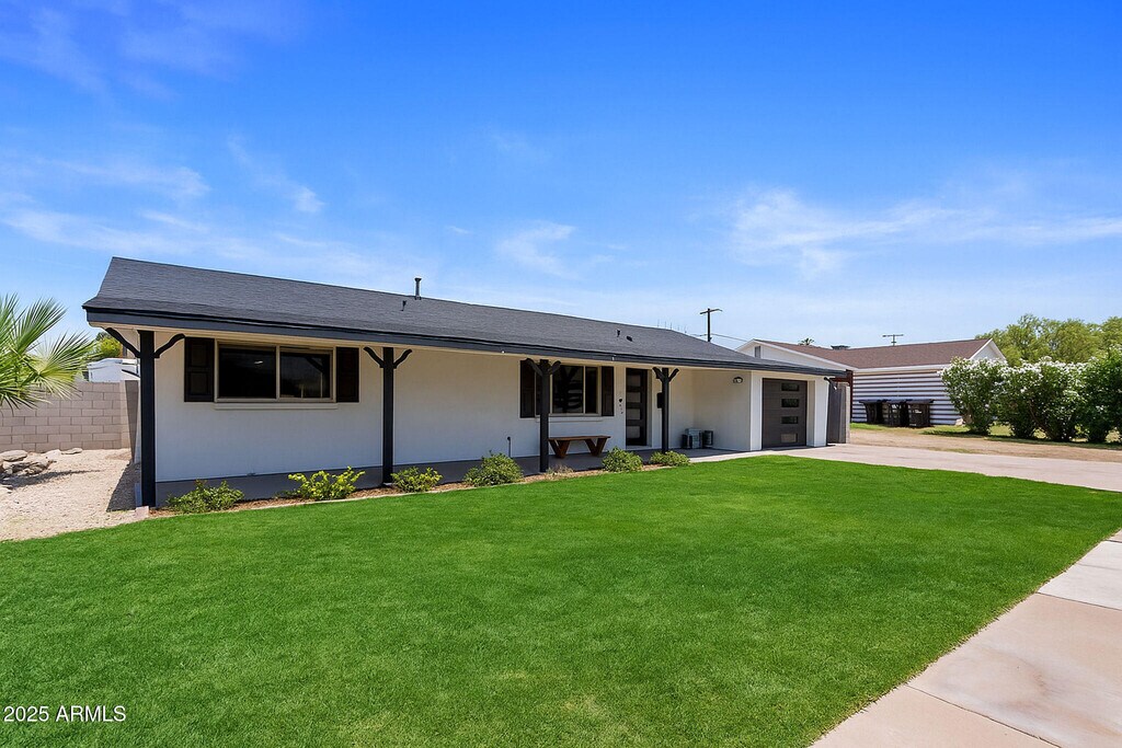 Welcome to this beautifully renovated unfurnished modern ranch-style home with detached casita/ADU offering a fresh take on stylish living in the heart of Scottsdale. With its updated interior & thoughtful layout,this home delivers turnkey convenience with designer touches throughout - perfect for elevated & functional living. Step inside to an open-concept single level floor plan filled with natural light & warm wide plank luxury vinyl flooring that flows seamlessly throughout the main living areas. The heart of the home is the stunning chef's kitchen,showcasing a waterfall-edge quartz island,sleek white shaker cabinetry,modern gold hardware & high-end stainless-steel appliances,including a gas range. A farmhouse apron sink & herringbone tile backsplash add just the right right touch of charm,while the spacious island offers plenty of room for meal prep or casual gatherings. The kitchen flows easily into both the dining & great rooms,making this home ideal for hosting family & friends. A bold black accent wall & statement light fixtures add to the sophisticated atmosphere. Step outside to a spacious & private backyard designed for relaxation & entertaining. A large patio anchors multiple outdoor living zones,featuring low-maintenance hardscaping with raised planter beds & a cozy firepit area,perfect for enjoying cool desert evenings. Conveniently located near shopping,dining,schools,& freeways,this home is a polished blend of style,function & location.