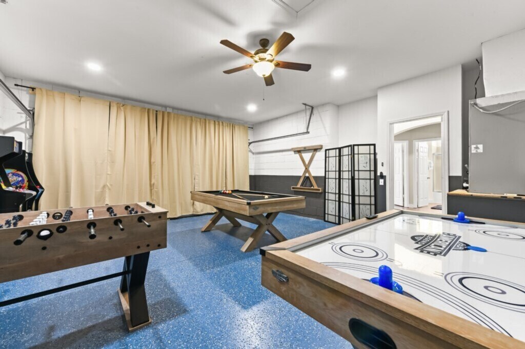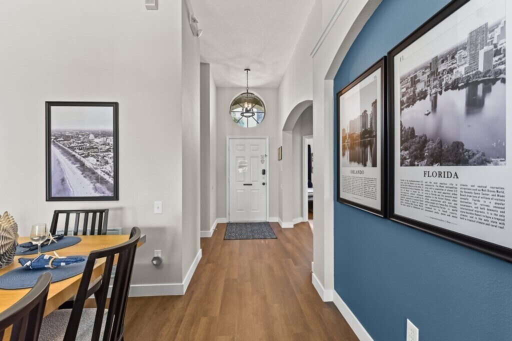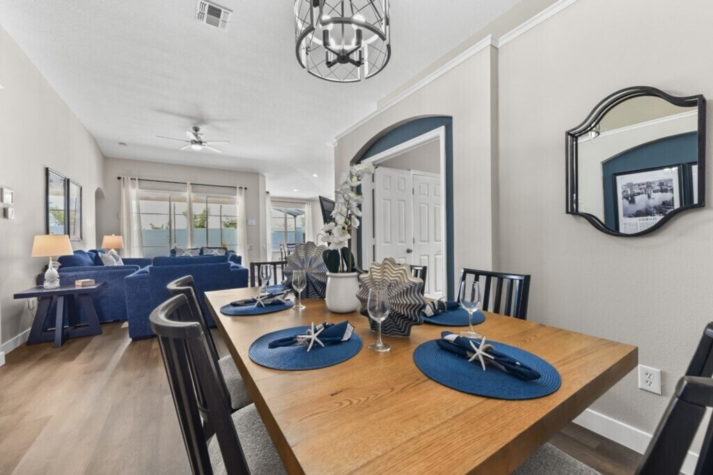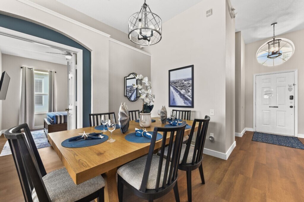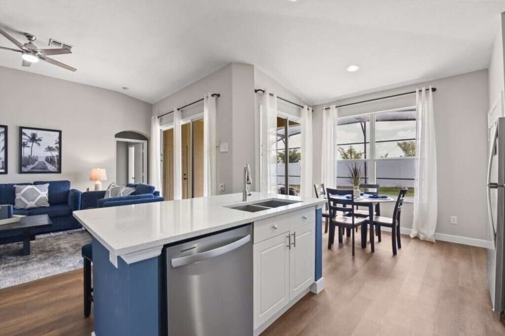 Welcome to this stunning 1834 sq. ft. villa in Windsor Palms Resort, just 8 minutes from Disney! With 4 bedrooms, 3 bathrooms, and 6 cozy beds, this professionally maintained home sleeps up to 8 guests. Enjoy a private pool and spa, a game room, free WiFi, and easy access to local attractions, shops, and restaurants. Whether you're here to explore or relax, this is your perfect home away from home in sunny Florida! The open-concept living area features stylish furnishings, cozy seating, and a large TV for movie nights or catching up on your favorite shows. Perfect for family gatherings, this inviting space sets the tone for a memorable stay. The villa boasts 4 comfortable bedrooms, including 2 with luxurious king-size beds, a cozy full bed, and 3 twin beds. Each room is designed to provide a restful night's sleep after your exciting adventures. With 3 modern bathrooms, including one with a spacious tub, you'll have all the amenities needed to refresh and recharge. The fully equipped kitchen offers everything you need to prepare your favorite meals, including an oven, refrigerator, dishwasher, microwave, coffee maker, and more. Enjoy meals together at the elegant dining table or the bright breakfast nook with poolside views. Relax by the private screened-in pool and spa, perfect for soaking up the Florida sunshine. With plenty of seating, this outdoor oasis is ideal for unwinding with a drink or planning your next adventure. For indoor entertainment, the game room features a pool table, foosball, and a console for hours of fun. It’s a great spot to enjoy quality time with family and friends. Families will love the vibrant kids’ room with a fun bunk bed, as well as thoughtful amenities like a pool safety fence and nearby playground. Pool and spa heat is available for an additional $35 per night plus tax and must be requested 7 days prior to arrival. The villa does not include a grill or crib. Located in Windsor Palms Resort, guests have access to top-notch facilities including a clubhouse, community pool, and other recreational options. Disney parks are just 8 minutes away, with Universal Studios, Epcot, and other attractions close by. Shopping, dining, and beaches are all within easy reach, making this villa the perfect base for your Sunshine State adventures. Check-in is at 4 PM and check-out is at 10 AM. Maintenance is provided weekly, ensuring a clean and pest-free environment. A guest screening process will be conducted, and further instructions will be provided to complete this step.