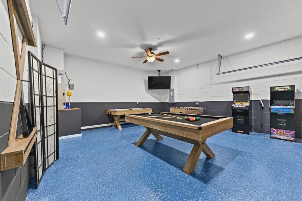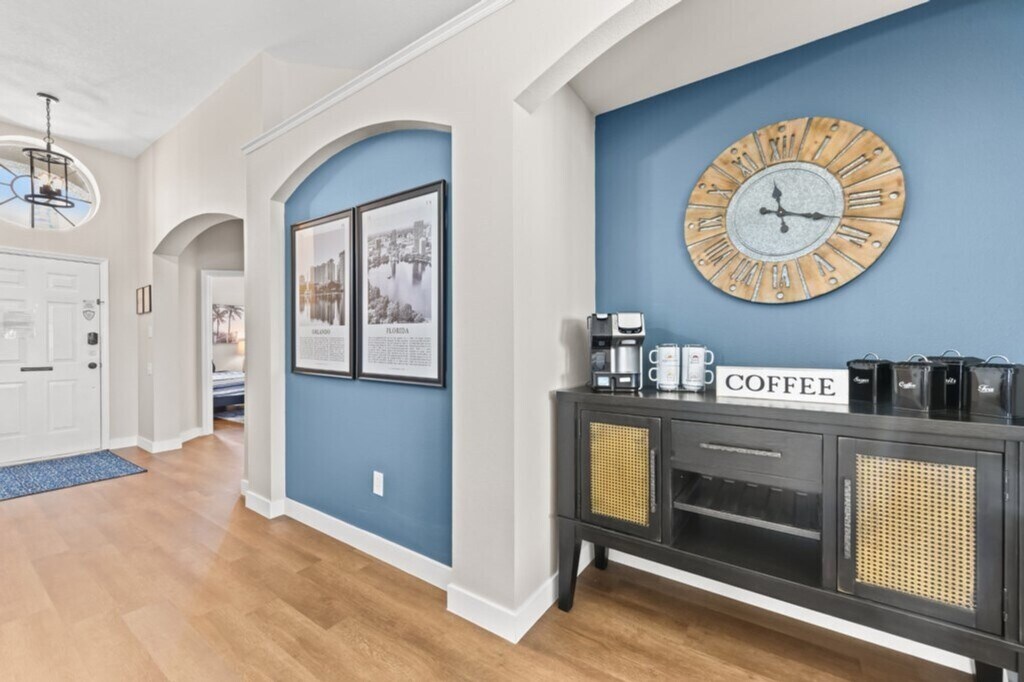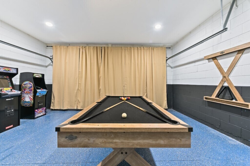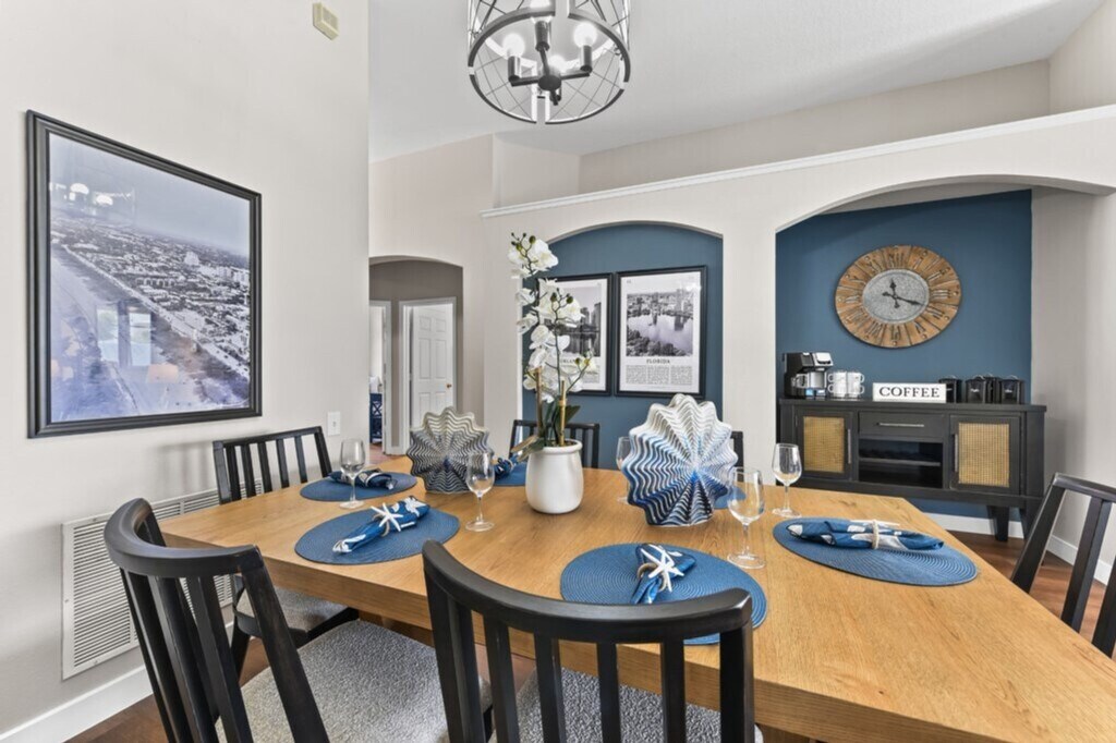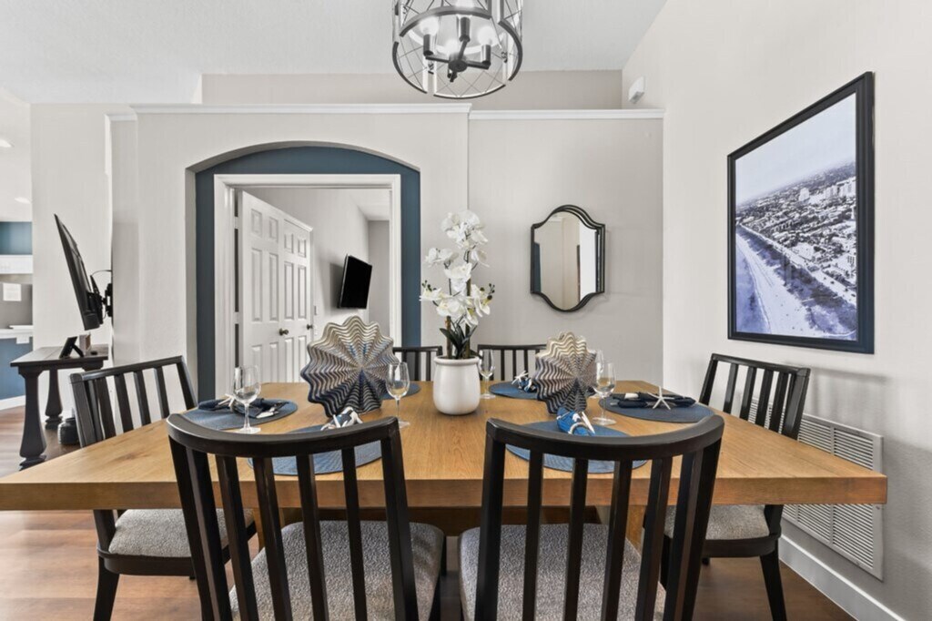 Welcome to this stunning 1834 sq. ft. villa in Windsor Palms Resort, just 8 minutes from Disney! With 4 bedrooms, 3 bathrooms, and 6 cozy beds, this professionally maintained home sleeps up to 8 guests. Enjoy a private pool and spa, a game room, free WiFi, and easy access to local attractions, shops, and restaurants. Whether you're here to explore or relax, this is your perfect home away from home in sunny Florida! The open-concept living area features stylish furnishings, cozy seating, and a large TV for movie nights or catching up on your favorite shows. Perfect for family gatherings, this inviting space sets the tone for a memorable stay. The villa boasts 4 comfortable bedrooms, including 2 with luxurious king-size beds, a cozy full bed, and 3 twin beds. Each room is designed to provide a restful night's sleep after your exciting adventures. With 3 modern bathrooms, including one with a spacious tub, you'll have all the amenities needed to refresh and recharge. The fully equipped kitchen offers everything you need to prepare your favorite meals, including an oven, refrigerator, dishwasher, microwave, coffee maker, and more. Enjoy meals together at the elegant dining table or the bright breakfast nook with poolside views. Relax by the private screened-in pool and spa, perfect for soaking up the Florida sunshine. With plenty of seating, this outdoor oasis is ideal for unwinding with a drink or planning your next adventure. For indoor entertainment, the game room features a pool table, foosball, and a console for hours of fun. It’s a great spot to enjoy quality time with family and friends. Families will love the vibrant kids’ room with a fun bunk bed, as well as thoughtful amenities like a pool safety fence and nearby playground. Pool and spa heat is available for an additional $35 per night plus tax and must be requested 7 days prior to arrival. The villa does not include a grill or crib. Located in Windsor Palms Resort, guests have access to top-notch facilities including a clubhouse, community pool, and other recreational options. Disney parks are just 8 minutes away, with Universal Studios, Epcot, and other attractions close by. Shopping, dining, and beaches are all within easy reach, making this villa the perfect base for your Sunshine State adventures. Check-in is at 4 PM and check-out is at 10 AM. Maintenance is provided weekly, ensuring a clean and pest-free environment. A guest screening process will be conducted, and further instructions will be provided to complete this step.
