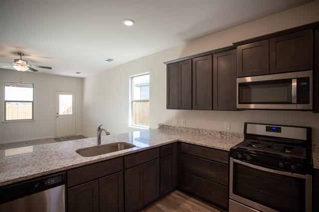 Beautiful home in Big Sky Estates just west of Denton and located in the Krum ISD. This single story home three bedroom two bath home features a stylish and functional layout. Highlights include open floor plan, granite counter tops, stainless steel appliances, walk in closets, covered back patio, window coverings throughout, and full sprinkler system in front and back yard. The kitchen is open to the family room creating the ideal entertainment are. The master suite is the perfect place to retreat to, with a large bathroom complete with enclosed shower and walk in closet. You will enjoy spending time with family and friends in this thoughtfully designed home.