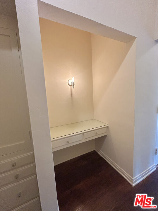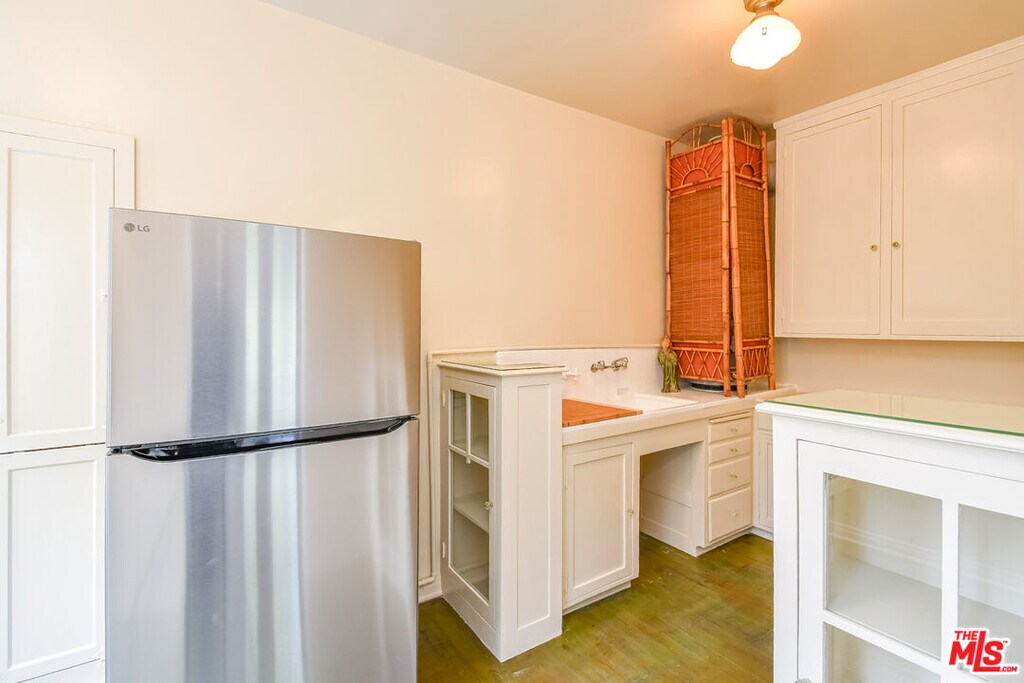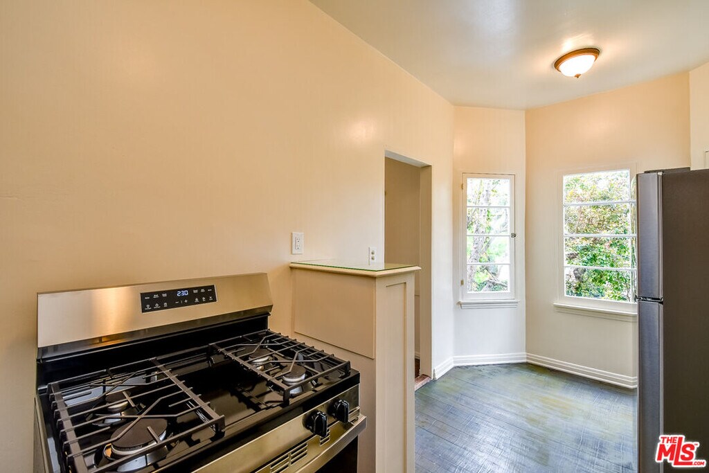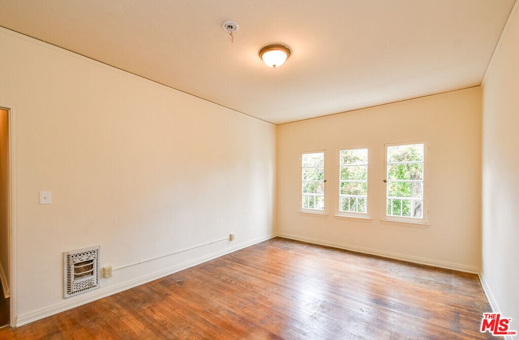 Charming 1930s Spanish-Deco style 1-bedroom/1-bath apartment with tons of storage space on the second floor of a six-unit building. Beautifully maintained with original details intact throughout. Features include hardwood floors, classic built-ins, and 3 walk-in closets. The bright, spacious living room flows into the formal dining room and charming kitchen with additional space for an eat-in nook. Brand new stove and refrigerator. The full bathroom showcases original 1930s tile with a fresh refinish on the bath tub and shower. A long hallway leads to the spacious bedroom, complete with a large walk-in closet. This lovely corner building is perfectly located near La Cienega and Melrose shops and dining, as well as the Melrose Place Farmers Market held every Sunday. MLS# 26696849