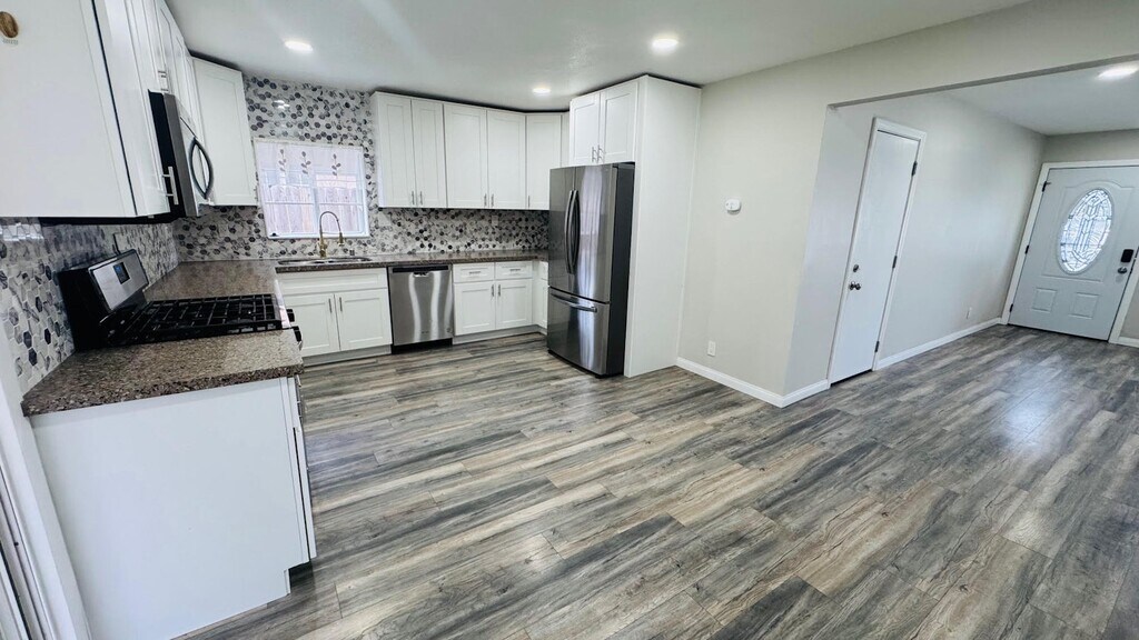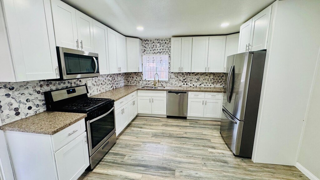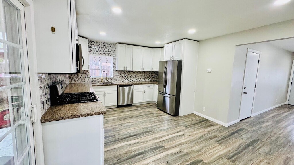 Remodeled home with no expense spared! New custom kitchen with beautiful quartz countertops, new floors & stainless-steel appliances. Living room w/new modern floors perfect for entertaining. A/C was added for your comfort, bathroom has new modern tiled floors & showers, sinks, white wood cabinets, & brushed-nickel lights/fixtures. Modern touches & new dual-pane windows throughout the home. Large yard for entertainment and relaxation. An electric car charger is also available.