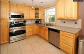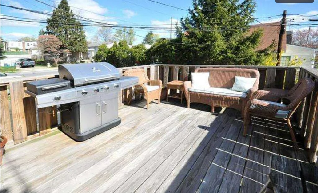 The first floor is bright and spacious, with an oversized living room, and a formal dining room that opens right into the beautiful kitchen. The kitchen boasts all stainless steel appliances, ceramic tile flooring, gleaming granite counter tops, and all new cabinetry. This home also features gorgeous hardwood floors throughout, all newer windows throughout, and newer central air and heating systems. A nice deck wraps around the back which can be accessed through the sliding glass doors in the dining room. There's a ton of storage in the basement, and private parking out back.