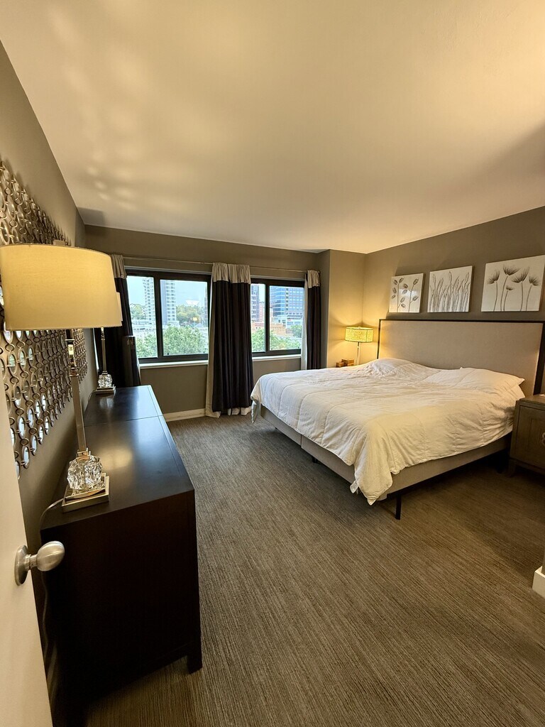 Stunning condo in the Winston Churchill condominiums! Prime location in the heart of The Country Club Plaza! This condo has all of the charm and luxurious finishes. Gorgeous blonde floors, VIEWS, updated kitchen, cozy bedroom with walk in closet and spa like bathroom! Kitchen comes with stainless steel refrigerator, oven/range, dishwasher. Let's go over the amenities! -Furnished -includes a reserved, garage parking space. -workout room. -Camera security throughout building. -Secure entry -in unit laundry -Stunning views to the North and East. -community penthouse that can be rented out for parties. Comes with a kitchen, fireplace, seating, grill, fire pit and outdoor seating with views. -open kitchen with bar seating. Dining space. Work desk area. Queen bed, blackout curtains, walk-in closet. -Coin laundry room in basement to the right. -12th floor penthouse “clubhouse” has insane views, outdoor space, can be reserved for parties, Chiefs games. Tenant covers the electric and internet. No pets. 1 year lease. **Full deposit and $100 administrative fee due upon application approval.**