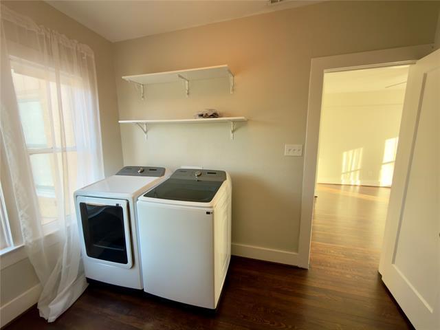 Nestled in the heart of Kidd Springs and within walking distance to the Bishop Arts District, this pristine first floor half duplex offers a rare blend of historic character and modern updates. Listed on the National Historic Registry, this Prairie style residence showcases timeless appeal with refinished hardwood floors, an open floor plan, and abundant natural light throughout. The thoughtfully designed two bedroom, one bathroom layout flows seamlessly between the living, dining, and kitchen spaces, making it ideal for both everyday living and entertaining. The kitchen has been refreshed with newly replaced countertops along with a gas range, dishwasher, and refrigerator, while the bathroom has also been updated with new countertops, adding a clean and modern touch to this classic home. A washer and dryer are provided for tenant use, offering added convenience. The location is truly unbeatable. Bishop Arts District is just two blocks away and offers some of Oak Cliff’s best dining, shopping, and entertainment. Kidd Springs Park is only one block away and features scenic trails, a fishing pond, and a recreation center. Methodist Hospital is less than half a mile away, providing additional convenience. Landlord screening will be completed through My Smart Move. A completed Texas Realtors Application is required and must be submitted directly to the listing agent. No pets will be accepted.
