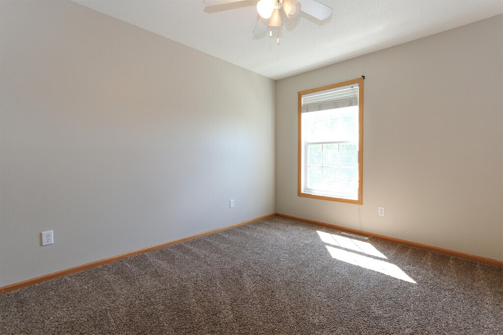 For a video tour of this home, please contact Jill, or search the address "8033 Stratford Circle, Shakopee" on YouTube. Spacious town home with three bedrooms on the same level! The main floor offers an open concept with a large living/dining combination, a sliding door out to a private deck, half bathroom, and kitchen with breakfast bar, white cabinets, pantry and a space for an eat-in dining area or a desk/bakers rack. The upper level has the vaulted master suite, with walk-in closet, private bathroom with jacuzzi tub and separate shower and double sinks. Two more bedrooms and a full bathroom on this level. The finished lower level has a 4th bedroom with it's own private 3/4 bathroom, the laundry and mechanical areas as well as access to the garage. Two car attached garage. Located in a nice, quiet neighborhood, close to shopping and tons of restaurants along with easy access to Hwy 13 and 169. Shakopee School District #720. LEASE TERMS: $2295 for a 16-month lease. Security Deposit is equal to one month's rent. Garbage, snow, and lawn care are included. Tenant is responsible for all other utilities. Pets may be accepted based on owner's approval and with a $300 non-refundable pet fee. RENTAL SCREENING GUIDELINES: Background and Credit Checks are conducted on all adults Income of 3x the monthly rent or more Credit score of 600 or higher No felonies or violence-related criminal convictions No previous evictions The criteria above are not all-inclusive, and other factors may apply; it is only meant to be a guideline. MANAGEMENT: This home is professionally managed by Mauzy Properties. Mauzy Properties is a full-service property manager, and they provide tenants with a great rental experience. Streamlined application process, online rent payments, online repair requests, and many more features and perks. Living Room Main 12x12 Dining Room Main 11x11 Family Room Main 22x13 Kitchen Main 12x12 Bedroom 1 Upper 16x13 Bedroom 2 Upper 11x13 Bedroom 3 Upper 11x11 Bedroom 4 Lower 12x12 Spacious 4/BR, 4BA, 2-story Townhome w/ Large Owner Suite.