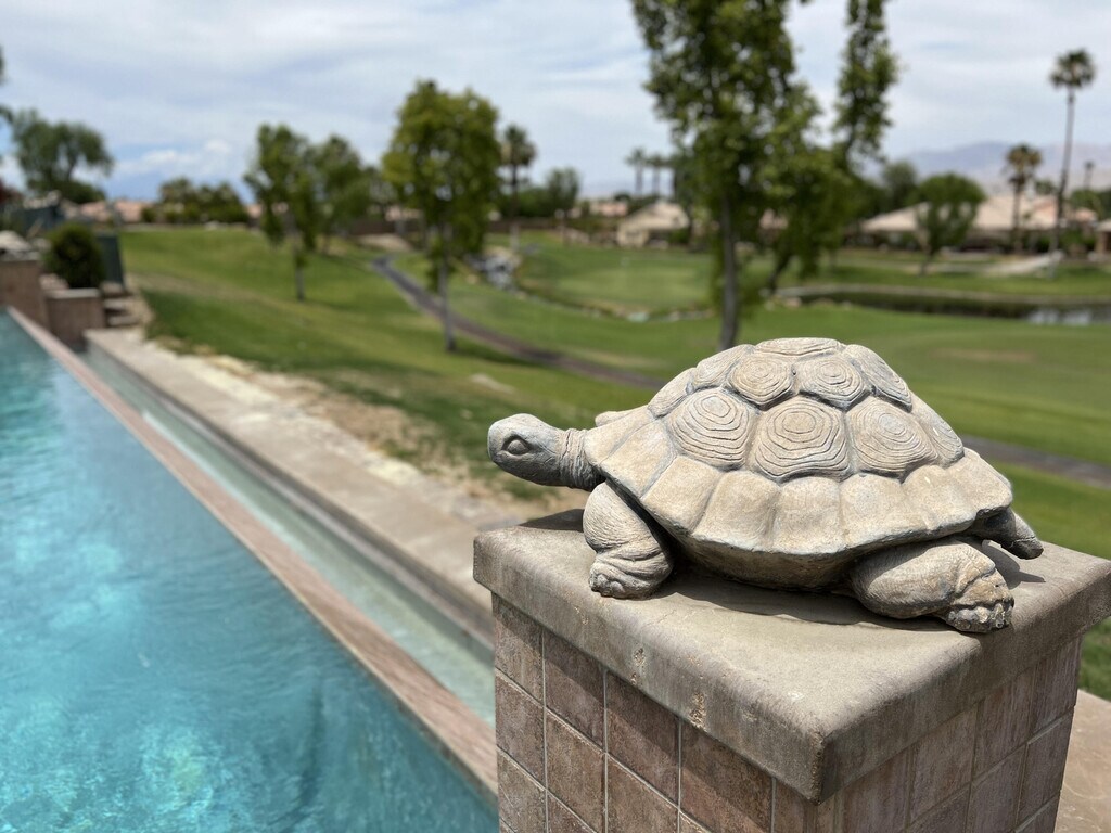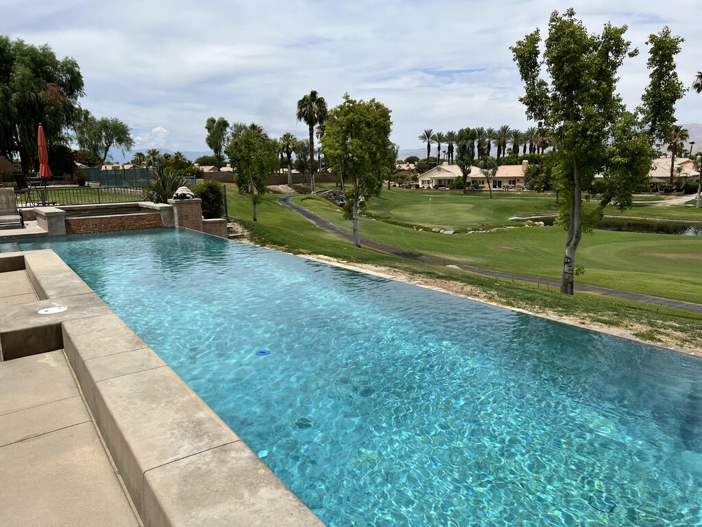 Available Nov & Dec 2025 This formal model home sits high above the signature hole at Big Rock Golf Course with amazing views of the green,lake,Shadow Mountains to the North,and San Jacinto Mountains and beautiful sunsets to the West. This home boasts a huge infinity edge pool great for doing laps or just floating with your favorite beverage. Inside there are two master suites with King beds and their own full bathrooms and an additional half bath off of the open great room. This property is not inside the gates off Indian Springs Country Club but the quiet dead end street still has the great location to all the North La Quinta area has to offer as well as easy access to I-10 and HWY 111. Security Deposit $3500