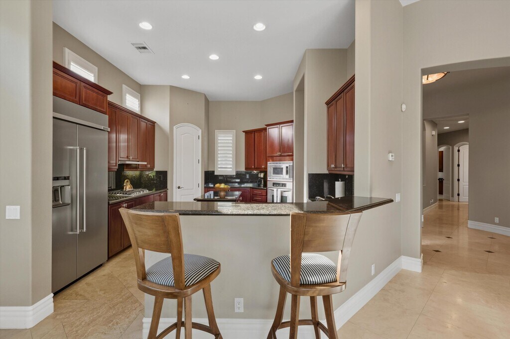 Discover the perfect Mountain View CC rental,blending vibrant social amenities with premier golf access! For a one-time $750 social membership transfer fee,tenants enjoy exclusive clubhouse dining,pickleball,tennis,bocce,a state-of-the-art fitness center,engaging fitness classes,a sparkling community pool,and a lively calendar of social events. Golf transfer rates vary by lease termcontact us for details. Entertain in style in the expansive,beautifully landscaped backyard,featuring a private pool,raised spa,covered paver patio,built-in BBQ,and a fire dining table. The charming front paver courtyard,shaded by a covered pergola,offers additional seating for relaxation. Inside,the gourmet granite kitchen boasts an island breakfast bar,stainless steel appliances,a gas cooktop,a pantry,and a cozy dining table for four. The inviting great room,complete with a fireplace,smart TV,and adjacent bar,seamlessly opens to the backyard pool area. Host elegant dinners in the formal dining room,perfect for six. Retreat to the luxurious primary suite with a king bed,smart TV,and French doors leading to the backyard oasis. Its ensuite bath features dual vanities,a dressing table,a separate tub and shower,and a spacious walk-in closet with ample storage. The generously sized second bedroom suite offers a queen bed,smart TV,desk,large closet,and a bath with dual vanities and a shower-over-tub. The private casita,accessible from the courtyard,includes a king bed and a bath with dual vanities and a walk-in shower. A convenient laundry room with an extra refrigerator,a powder room,and a two-car attached garage with golf cart space complete this exceptional home. Owner pays HOA,pool/gardener service,water,cable,internet and gas/electric with $400 month cap for combined gas/electric.