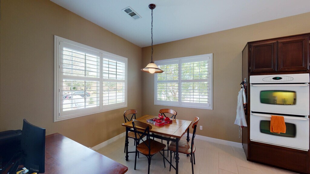 This south facing 3 bedroom/2.5 Bath offers and outdoor paradise. The open floor plan offers extensive title floors,10' ceilings & a 3-car garage. This is a breakfast nook,bright kitchen with stainless steel appliances and a formal dining area that overlooks the covered patio and lush landscaped backyard. The oversized master suite is well appointed,and the Master bath has been upgrade with dual vanities,large tub,shower & walk-in closet with organizers. The backyard boasts a pebble pool & spa with tanning ledge and outdoor shower. The built-in BBQ & refrigerator are ideal for entertaining. Additional features include shutters,custom fixtures and ceiling fans,and is offered furnished per inventory. The home is adjacent to a greenbelt and situated in the heart of Estacio,a wonderful gated community that also features a community pool. This is the perfect location to enjoy your desert vacation! Home available July-October 2025 @ $3000 per month and November-December @ $4,000 per month. There is a two month minimum!