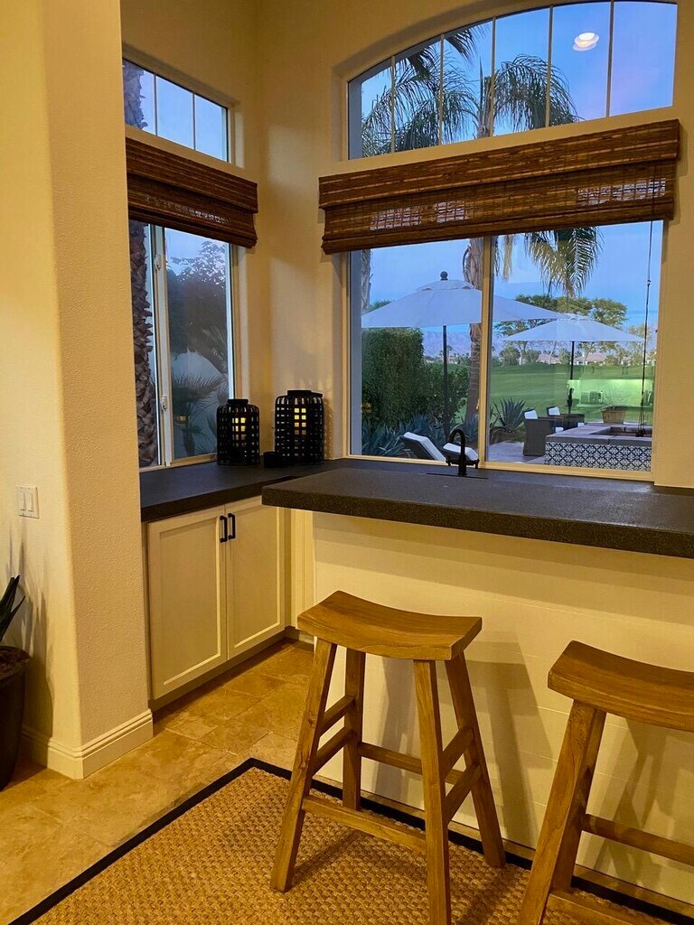 This immaculate Sedona floorpan sits on the golf course,is turnkey furnished and has been exquisitely remodeled! Enter through the inviting foyer and find travertine and wood floors throughout this 4 bedroom,3 1/2 bath home. A beautiful dining area and cozy den with pull out queen bed,lead to the kitchen and family great room with counter seating at the island and bar. The upscale kitchen has a Wolf range and upgraded stainless steel appliances and is the perfect place to entertain. Master retreat has king bed,Smart TV and private access to backyard and stunning negative edge pool/spa. High end patio furniture,barbecue and fire pit,make this area the perfect place to relax and unwind,looking over the gorgeous Mountain View Country Club golf course. Two separate bedrooms each with en suite bathrooms and smart TV's are located on the opposite side of the home for ultimate privacy. $5000 security deposit and $350 cleaning fee. Landlord pays HOA fees,weekly gardening and pool service,pest control and all utilities with a cap of $350/month for gas and electric. Available January and February 2026.