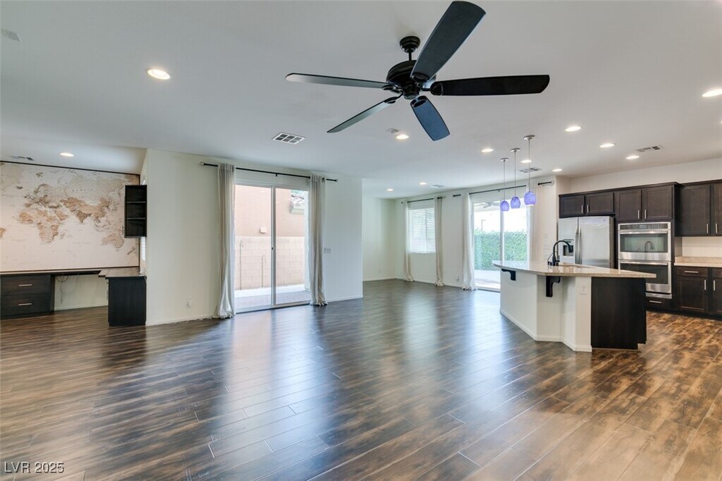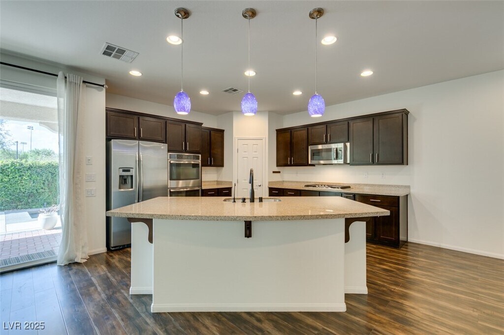 Welcome to your modern, move in ready, 4 bedroom, 3 bathroom Mountain's Edge Home! Inviting entry way takes you to an open living room, kitchen features recessed lighting, upgraded stove, granite countertops and shelves in pantry. Fully landscaped backyard with covered patio and pool, pavers. Private courtyard of the living room. Porcelain tile downstairs, carpet throughout the second floor. Primary bedroom features 2 closets. lots of natural light and vanity in bathroom. Loft. Laundry room is located upstairs. Driveway has pavers. BASE RENT $2,675 + $19/M TRASH, $27/M SEWER, AND $40/M TENANT BENEFITS PACKAGE = $2,761 TOTAL PERIODIC MONTHLY RENT