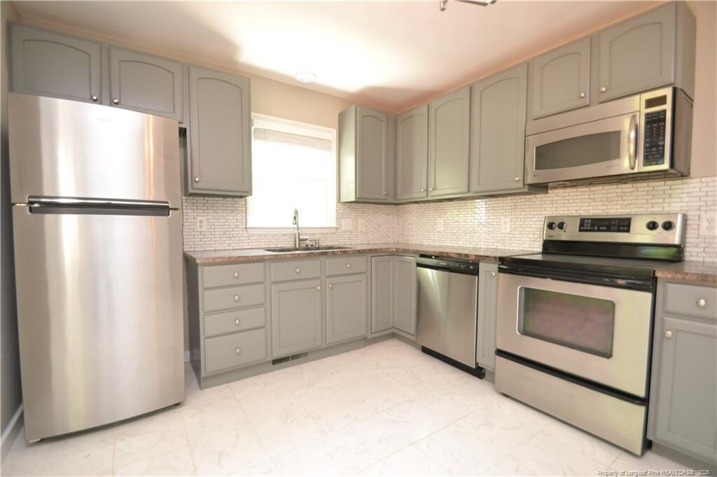 Tucked away on a quiet, tree-lined street in a prime Garner location, you'll find 804 Curtiss Drive. This darling and affordable property is ready for immediate occupancy and sure to please! An extended, private driveway greets you upon arrival and a brick staircase will lead you into an updated and impressive interior. Once inside, you'll enter a spacious family room boasting hardwood floors, double picture windows and a cozy fireplace with mantle. Around the corner is an updated kitchen that boasts sleek, gray cabinetry adorned by beautiful granite counters and accentuated by a subway tiled backsplash. A suite of sleek, stainless-steel appliances are as beautiful as they are functional and the smooth-top oven makes for easy clean up. An adjacent dining area is perfectly-proportioned and enjoys a lovely view of the enormous backyard. You'll fall in love with the first floor primary bedroom measuring in at a generous 11x15 and it features double picture windows as well as a walk-in closet and direct access to an updated bathroom with a marble-topped vanity, luxury plank floors, and oil rubbed bronze fixtures. Next, head upstairs where you'll find bedrooms #2 and #3. They're located on opposite ends of the home for maximum noise isolation and privacy and both are quite spacious and full of natural light. These bedrooms also possess ample closet space and enjoy easy access to a full hall bathroom with a marble-topped vanity, a tub/shower and luxury plank floors. Before wrapping-up your tour at 804 Curtiss Drive, be sure to visit the backyard! This home possesses a .37 acre lot and the backyard is simply enormous! The elevated deck offers a lovely view and there is plenty of space for all sorts of outdoor activities.