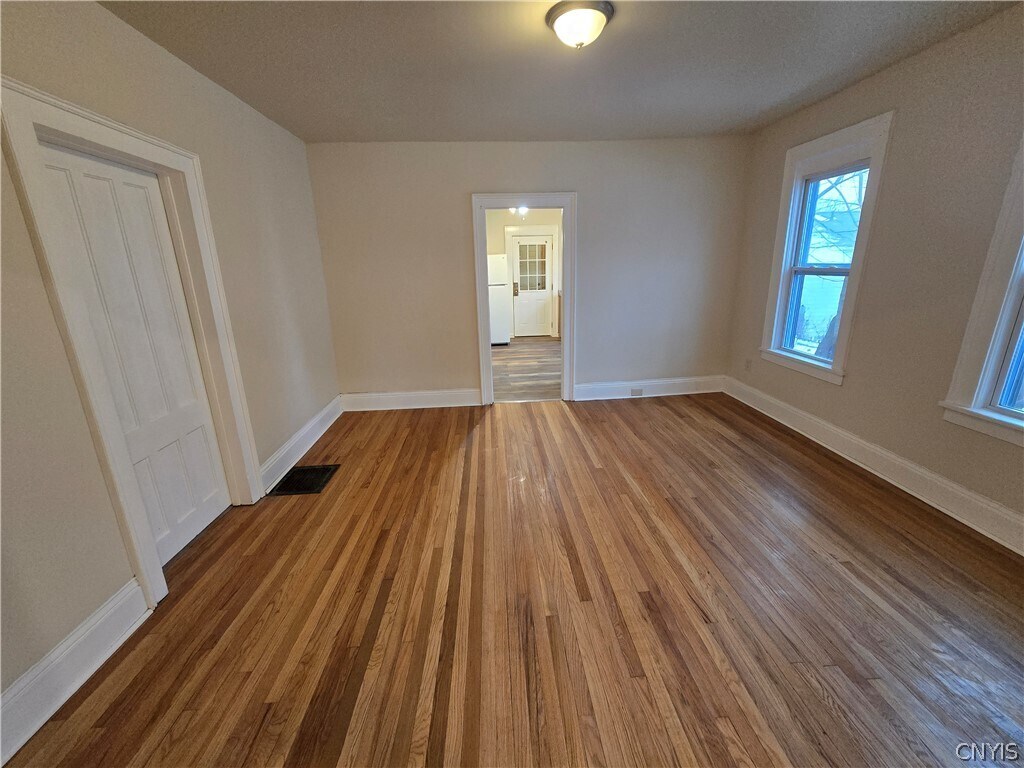 This well-maintained single-family residence,located on the north side of Syracuse,is available for immediate occupancy and offers a spacious,well-designed layout suited for comfortable everyday living. The home features four bedrooms and one full bathroom,with a functional floor plan that provides both convenience and flexibility. The first floor includes three generously sized bedrooms,a full bathroom,and a dedicated laundry area for added ease. The main living spaces consist of a large,inviting living room,a formal dining room ideal for gatherings,and a well-proportioned kitchen offering ample space for meal preparation and storage. The second floor is dedicated to a substantial fourth bedroom,providing a private and versatile space that may serve as a primary bedroom,guest suite,or home office. Hardwood flooring extends throughout much of the home,contributing to its classic character and overall appeal. Additional features include a front porch,offering a comfortable outdoor space for relaxation,and an enclosed entryway to the front door. A full basement provides abundant storage capacity. This property presents an excellent opportunity for tenants seeking a well-appointed home in a convenient Syracuse location. Tenants are responsible for all utilities,including a quarterly water bill,as well as lawn maintenance and snow removal. The property permits a maximum of one pet,not to exceed 35 pounds,subject to an additional monthly fee and applicable restrictions. Smoking is prohibited. Applicants must meet a minimum credit score requirement of 650 and demonstrate a gross monthly income of at least 2.5 times the monthly rent. Full first month's rent and security deposit are required prior to move-in.