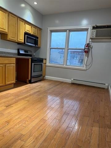 Location, Location, Location. Beautiful 3 bedrooms apartment in the heart of the City. Apartment features a huge living room/dinning room combination, 3 large bedrooms, eat-in kitchen, full bathroom. Hardwood floor throughout the apartment. Apartment is located near public transportation: bus stop at the corner of the street and the light rail is a few blocks away. Apartment is near schools, restaurants, shopping, parks, and laundromats. Parking available for a fee.