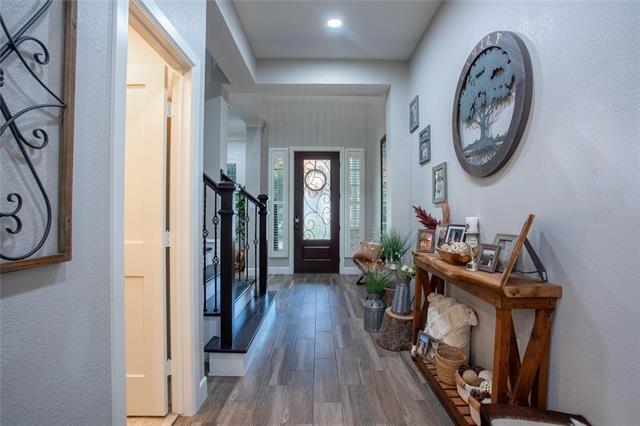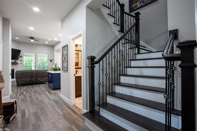 Experience luxury living in this beautifully renovated two-story home in the gated Little Bear community of Euless. The open-concept design connects the gourmet kitchen (featuring all KitchenAid appliances, a gas cooktop, and a large island) to the spacious living area and shaded patio overlooking a serene pond with a fountain. Wood-look tile floors flow throughout the home, adding style and durability. The oversized primary suite boasts a spa-inspired bath with dual vanities, a walk-in shower with high-pressure massage shower heads, and a generous closet. Upstairs offers a large second family room and three additional bedrooms, perfect for family or guests. Ideally located near DFW Airport, major highways, and just minutes from Dallas and Fort Worth, this home is in the highly sought-after Grapevine-Colleyville ISD, combining exceptional schools, modern comfort, and elegant living.