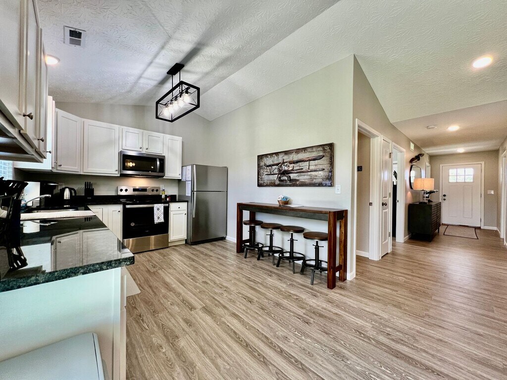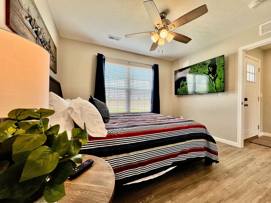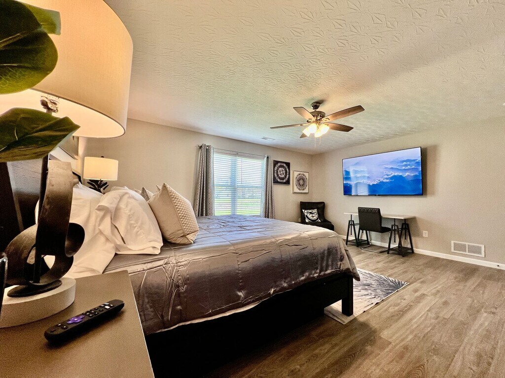Fully furnished and Fully stocked home. All utilities included and fully serviced grounds and maintenance. Hotel-like amenities. Ready for short or long term stays. Live worry free. Whether it is work or play that brings you to Trenton, Ohio; this brand-new home has everything you need. It's quiet, comfortable, and not too far from the city of Hamilton. For folks that like a little slower pace where they reside this home is just perfect. It has a large yard and a relaxing covered porch. There's a 75 Inch flat screen in the main room and each bedroom has its own 55-inch flatscreen smart TV. This home is meticulously maintained and we know you will love it! Come see us! Welcome to Trenton, Ohio; a true hidden gem located in Northeastern Butler County! Enjoy a scenic day in this beautiful small town full of heart. Our home is brand new and has so much to offer! A blend of comfort, style, and convenience greets you as soon as you enter our newly built ranch home. While decorating this inviting retreat, we have worked hard to create a home away from home feeling for our guests. The open-concept floor plan in the living space allows room for many guests. Everyone in your group will have room to mingle and relax. The living area is the home's heartbeat, successfully combining the relaxing living room with an inviting dining area and a fully equipped kitchen. Large windows allow plenty of natural light to illuminate the space throughout the day. The new carpet, laminate flooring, and tasteful décor create a feeling of warmth and coziness. Four comfortable bedrooms are designed to offer all the rest you need after a long day of exploring the exciting city of Trenton. The home offers relaxation and comfort, and we can't wait for you to experience it for yourself. ? LIVING ROOM ? The living room is a part of the contemporary open floor plan. See what the chef is up to, help them set the table, or unwind on the cozy sofa with a good book. ? A Comfortable Leather Sofa and single chairs ? 75 Inch Smart TV ? Coffee Tables ? Reading Lamps ? Sound system with Bluetooth and AUX connectivity ? KITCHEN & DINING ? Even the most demanding chefs would enjoy preparing delicious meals using numerous state-of-the-art cooking appliances. In addition, spacious countertops provide plenty of workspaces for you to prepare delicious homemade delicacies. ? Microwave ? Stove ? Oven ? Toaster ? Refrigerator/Freezer ? Keurig Coffee Maker ? Dishwasher ? Sink - Hot & Cold Water ? Trays ? Glasses ? Silverware ? Pots & Pans Serve those delicious meals on the adjacent dining table and let the smell of freshly cooked homemade delicacies invite everyone over for a tasty feast. If you don't feel like cooking, you can always check out one of the many nearby restaurants in the area. ? Dining Table with Seating for 7 ? SLEEPING ARRANGEMENTS - 4 BEDROOMS ? Three tastefully furnished bedrooms are designed to provide hotel-like comfort and convenience needed to relax and rest so you can remain energized and do everything you have planned the next day. ? Master Bedroom: King-Size Bed, Ensuite Bathroom ? Bedroom 2: Queen-Size Bed, Ensuite Bathroom ? Bedroom 3: Queen-Size Bed ? Bedroom 4: Queen-Size Bed All bedrooms are equipped with a similar set of amenities. ? Premium Pillows, Linens, and Sheets ? Closets with Hangers and Shelves ? Dressers with Spacious Drawers ? Night Stands with Reading Lights ? 55-inch Smart TV in all bedrooms ? BATHROOMS ? The master bedroom features an ensuite bath. Bedroom 2 also features an ensuite full bathroom. There is a full bathroom caters to the remaining two bedrooms and the living area. You don't have to worry about packing towels or essential toiletries, as we have already prepared these for you. ? Bathtub with a Shower ? Vanity ? Mirror ? Toilet ? Towels ? Hair Dryer ? Essential Toiletries Let us know if you have any questions regarding this beautiful home. We are more than happy to assist! We use the August Home application, which means there are no keys to lose! Simply, download the august home app and your key will be visible once your booking begins. When you arrive you may park in the large driveway. The entire home is exclusively yours without interruption during your stay, so relax, unwind, and make yourself at home. Other than the already mentioned amenities, the house also features: ? High-Speed Wi-Fi ? Central Air Conditioning ? Central Heating ? Washer/Dryer ? Iron/Board ? Free Parking ? Towels and Basic Consumable Toiletries We are just minutes away, but always respect your privacy. You may contact us through the app and we will answer you quickly. If for any reason we find the need to visit, we will alert you! ? ADDITIONAL ACCOMMODATION ? Traveling in a larger group, or your preferred dates are already taken? You'll be happy to know that we offer additional accommodation in the area. Please browse our host profile for the complete list of Homes. ? COVID-19 SANITIZATION ? The health, safety, and well-being of our guests are of utmost importance. For this reason, we use a thorough cleaning process after each check-out. ? NO SMOKING INSIDE ? Please refrain from smoking inside the home! Any smoking evidence will result in a fee for odor removal and furniture cleaning. ? NO PARTIES/EVENTS ? We kindly ask you to treat our home as your own to preserve its pristine condition for future guests and your return visits.
