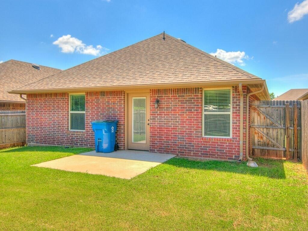 Edmond home features open concept,vaulted ceilings in the living area. Granite countertops,large pantry,and new oven in the kitchen. The master bedroom offers private access to the back patio and private bathroom. Ceiling fans throughout. Both bathrooms have new marble countertops. Deerfield neighborhood addition is served by top-rated Washington Irving Elementary,Heartland Middle School,and Santa Fe High School.