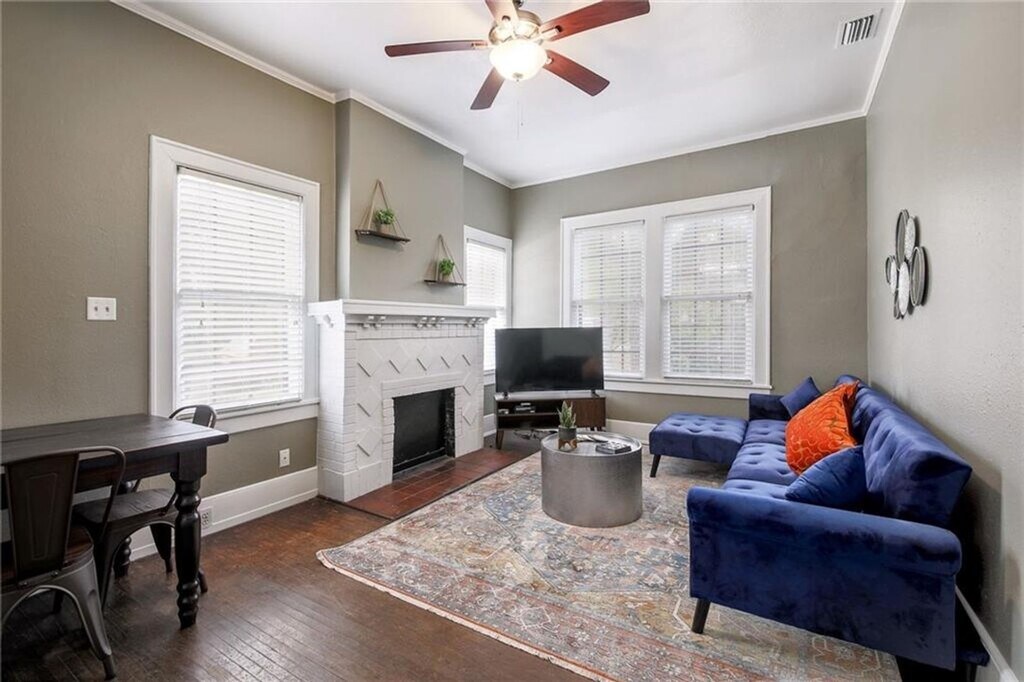 PRE-LEASE FOR AUGUST 2026. GREAT West Campus home on corner lot. 1923 cottage in West Central Campus with sweet front porch for relaxing and large bedrooms (4th bedroom is HUGE). Three FULL baths, amazing open & bright kitchen. Great roommate plan with off-street parking. Original wood floors in most of the house and original windows. Fireplace is nonfunctional but adds character. Easy walking distance to UT, UT shuttle, city bus lines, Breed's hardware, Texas French Bread, Cabo Bob's and so much more!