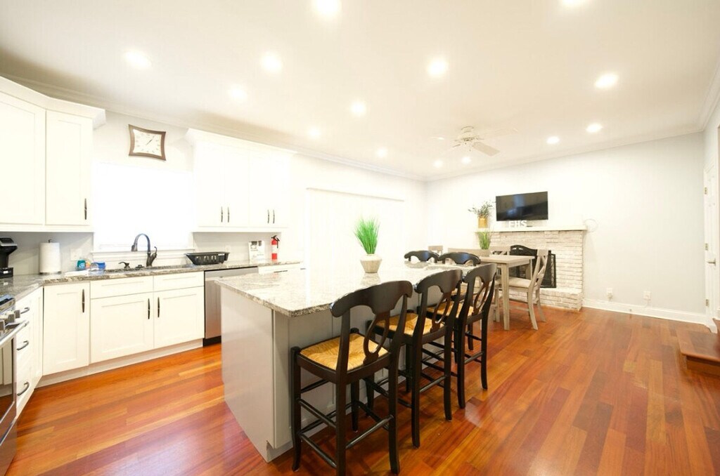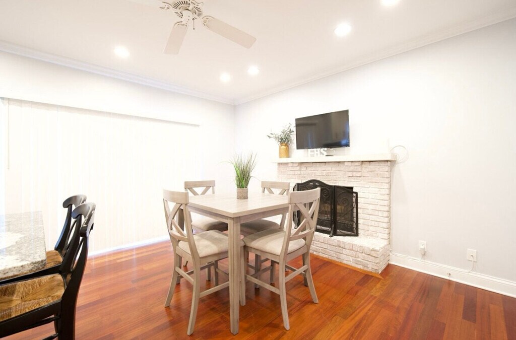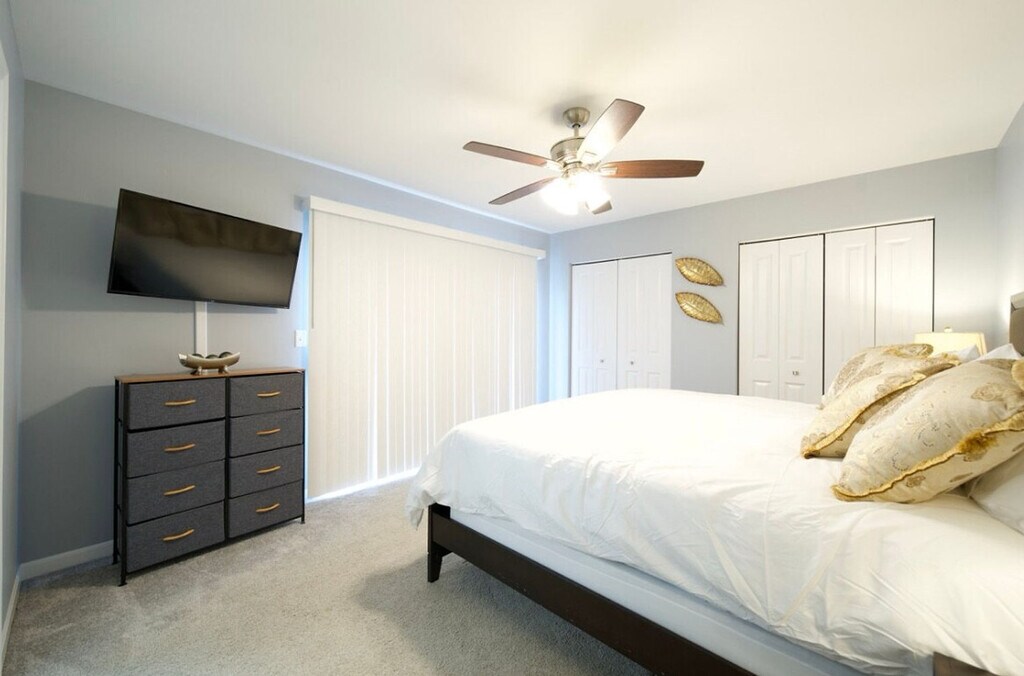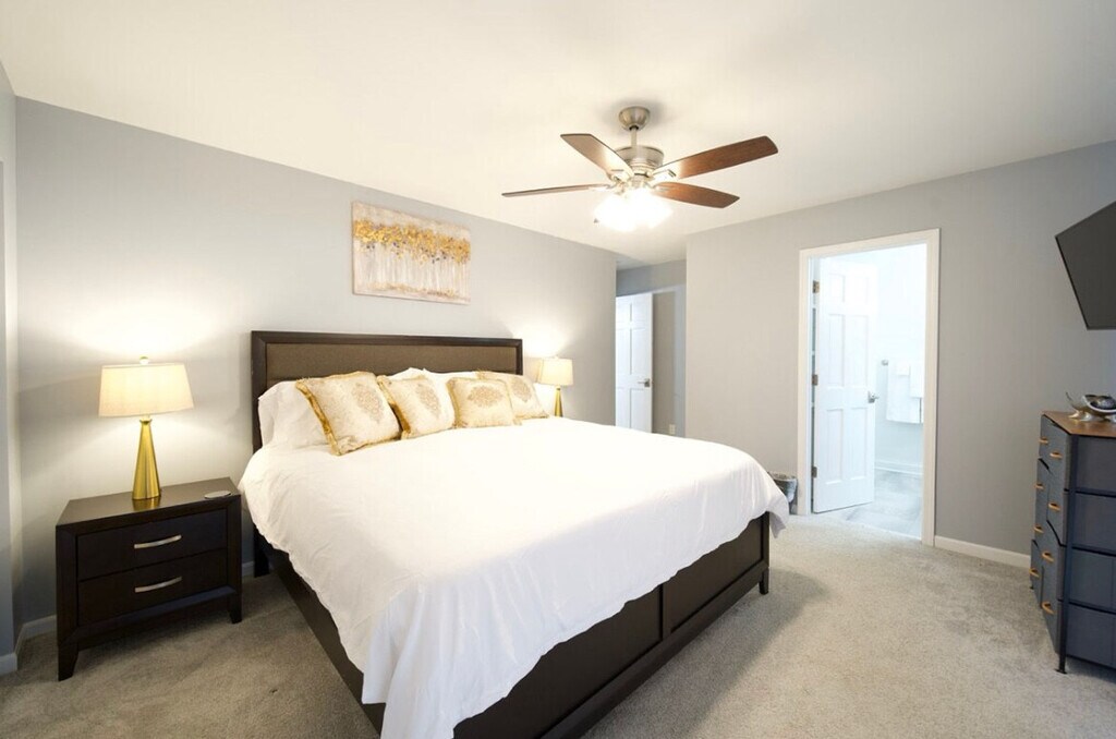 This 1800 SF home is located in downtown St. Charles, offering easy access to nearby restaurants, shopping, and a scenic river trail. The property features 4 bedrooms, 2 full bathrooms, and 1 half bathroom. The master suite boasts a king-size bed, while the other 3 bedrooms are furnished with queen beds. Additionally, there is space for 1 air mattress on-site, totaling 5 beds. The kitchen is well-equipped with plenty of utensils, cooking spices, and oils, making you feel at home. This single-family home includes a 1-car garage, driveway, and street parking. The fully fenced and private backyard features a deck, providing a perfect spot for relaxation. The home is children-friendly, offering a pack & play sleeper, a stroller, a highchair, and a booster seat for your convenience. For entertainment, there are 5 LCD televisions with access to Hulu, Disney, and ESPN streaming services, as well as Netflix and Prime Video (with your login). The property also features a sound bar in the living room, 50+ board games, playing cards, a stick hockey table, and an arcade cabinet. Located in downtown St. Charles, this home offers easy access to a variety of restaurants, shopping venues, and a scenic river trail, making it an ideal spot for both relaxation and exploration. Fees may vary for long-term stays. The property does not accept reservations without security fees paid upfront. No exceptions to this house rule. The home is equipped with 150 Mbps internet speed and Wi-Fi throughout, along with an Ethernet hard line available, ensuring a seamless remote work experience.