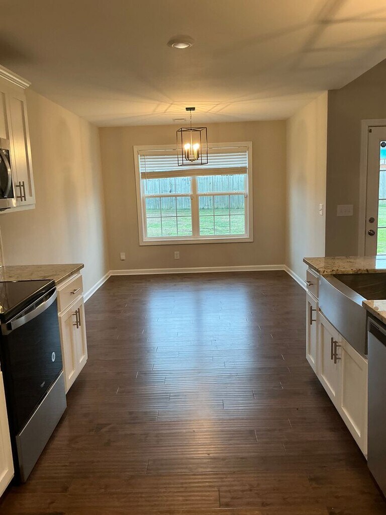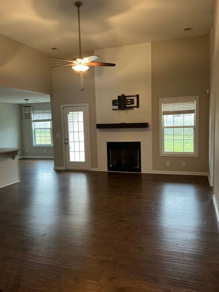 Welcome to this stunning ranch-style home with a spacious bonus room, perfectly situated on a quiet cul-de-sac! Enjoy an open living space featuring high ceilings and a cozy fireplace, ideal for relaxing or entertaining guests. The home boasts beautiful engineered hardwood floors and a modern kitchen with granite countertops. The primary suite offers a luxurious retreat with a separate soaking tub, double vanities, and a large walk-in closet. Step outside to the covered back patio or take a short walk to the nearby community park. Conveniently located close to post and pet friendly, this home combines comfort, style, and convenience in a peaceful setting!