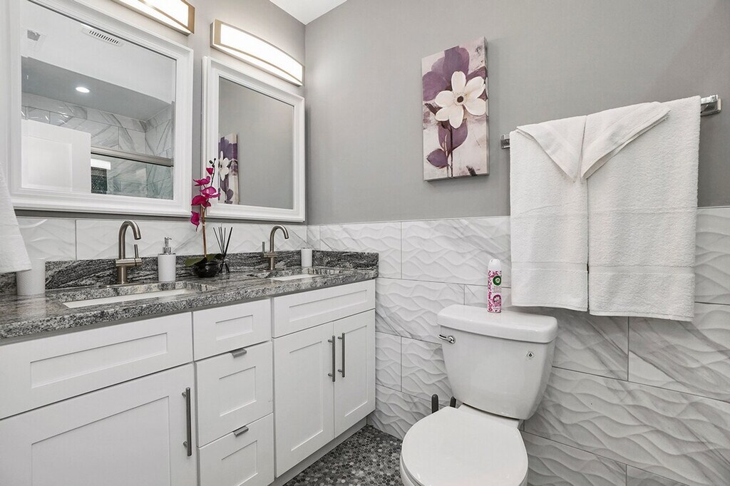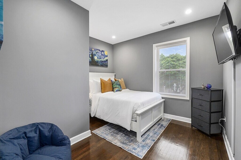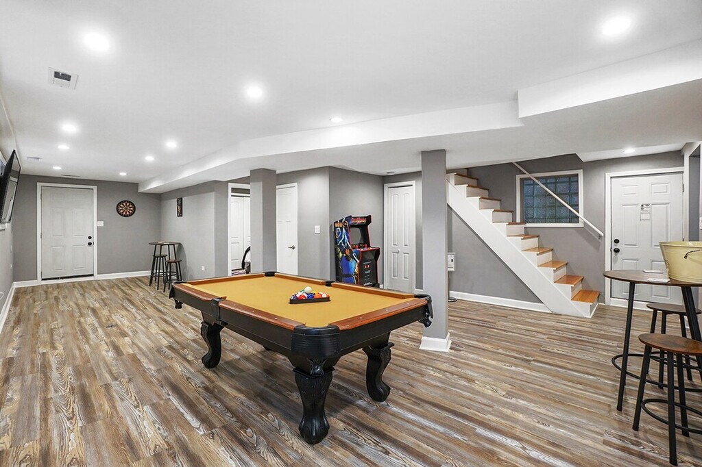 Feel at home in this 2600 sq ft renovated apartment in the South suburbs, only 30 minutes south of Downtown Chicago. This apartment has 5 bedrooms and 3.5 bathrooms. This single-family home features a fenced yard and a 2-car garage. The kitchen is fully equipped with plenty of utensils, including cooking spices and oils. For entertainment, there is a pool table, a two-player arcade-style basketball game, and an arcade cabinet with 2000 classic games. There are also cards and over 50 board games available. The apartment is equipped with 6 LCD televisions, all with access to Hulu, Disney, and ESPN streaming services in both English and Spanish. Netflix and Prime Video access are available with your own login. Wi-Fi is available throughout the entire home, with internet speeds up to 300 Mbps and an ethernet hard line available. The living area has a 55" TV with a sound bar, and the bedrooms have 40" TVs. For children, there is a pack and play sleeper, a stroller, a high chair, and a booster seat. Additional street parking is available if needed. If the home has a fireplace, it is not for guest use. [SI]