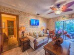 Welcome to Redbridge! This beautifully maintained 2BR/2BA single-story townhome sits on the golf course and features granite kitchen counters, updated baths, impact windows/shutters, wall-to-wall closets, and a new Samsung Hub fridge and 2025 hot water heater. Extras include a generator, fenced patio with built-in outdoor kitchen & Jenn-Air BBQ, new awning, and ample parking. Community pool, top-rated schools. 3 cars parking assigned. Completely furnished, TURNKEY. 3 TVs, cameras, etc. provided. MLS # A11937116