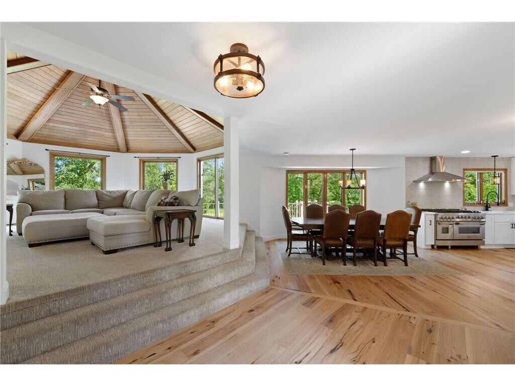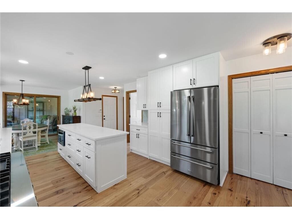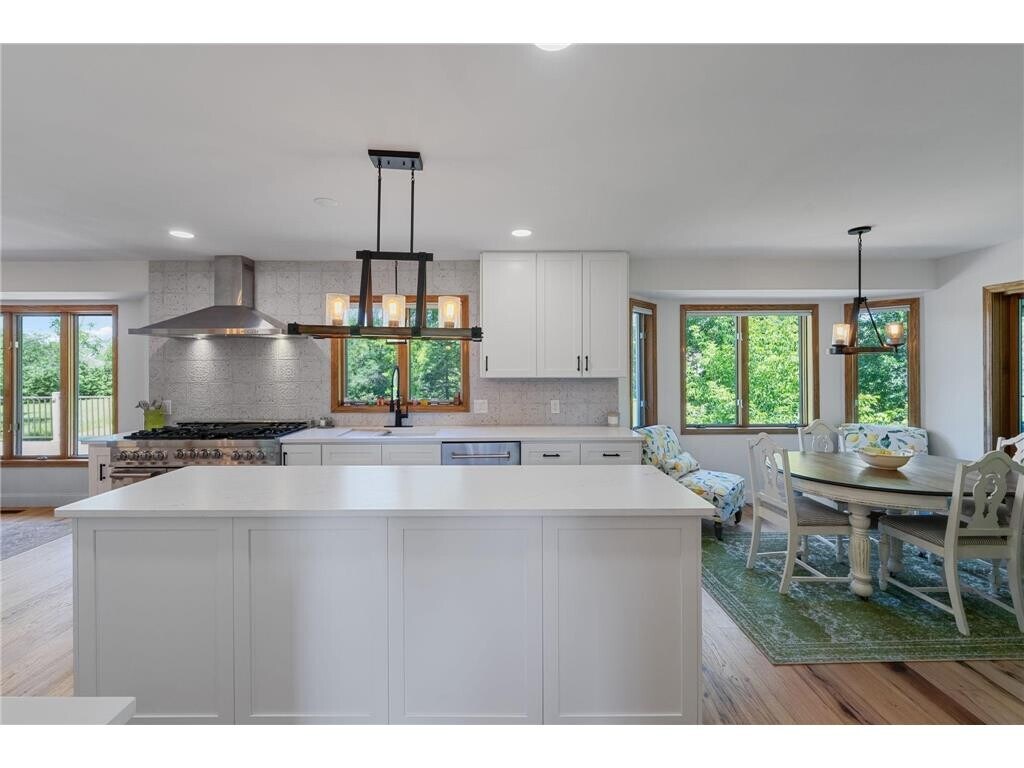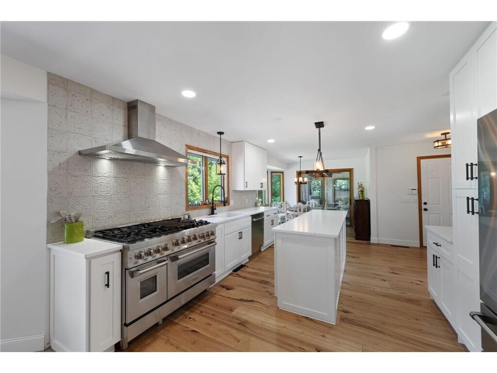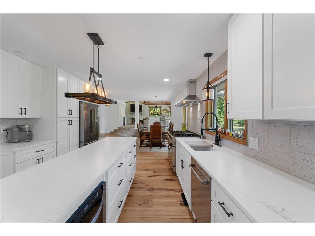 This beautifully renovated home on 2.8 acres offers space, privacy, and versatility. The main level features a primary suite with an attached bath and walk-in closet, a recently remodeled kitchen with custom quartz countertops and stainless-steel appliances - perfect for entertaining! Rounding out the upper level is a convenient main-level laundry, a three-season porch, and a maintenance-free deck overlooking your private backyard oasis. The updated lower level includes a family room, game room, two bedrooms, a thoughtfully designed full bath with laundry hookups, a new kitchen, walkout access, and a private two-car garage. This space is ideal for multi-generational living. Don't miss this rare, move-in-ready gem with newer appliances, roof + gutters, and a yard made for enjoying.
