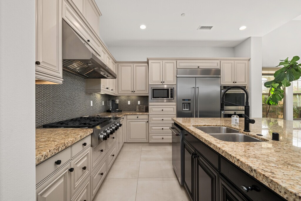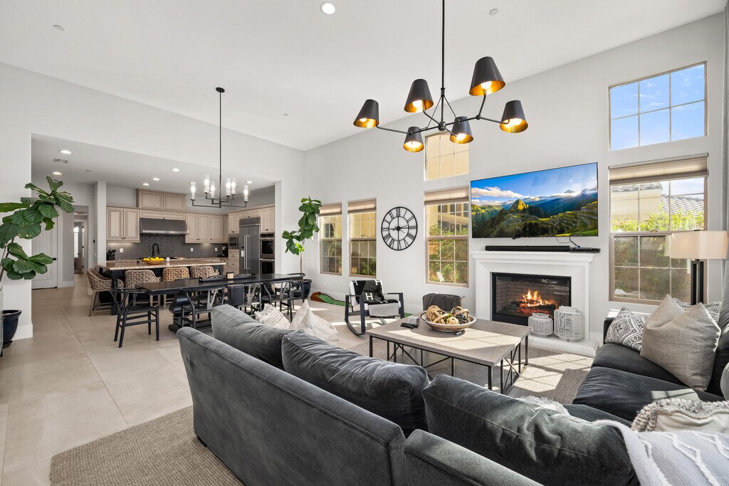 Located in the heart of the prestigious PGA West Signature community,this stylish 3-bedroom,2.5-bath home offers light-filled luxury just a one-minute golf cart ride from the Palmer,Nicklaus,and Stadium courses,clubhouse,fitness center,and Ernie's Bar & Grill. Designed for comfort and easy entertaining,it features a neutral,modern design with custom tile,upgraded carpet,and a chef's kitchen with commercial-grade KitchenAid appliances,and a spacious island. The open great room boasts high ceilings,a sleek fireplace,and large sliding doors leading to a private patio with stunning mountain views,sparkling pool,and BBQ areaperfect for relaxing or hosting guests. Make this your perfect desert vacation.