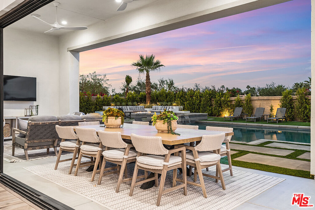 Indulge in the ultimate luxury experience at this exquisite La Quinta private resort-style home complete with a private pickle ball court! Designed with sophistication, relaxation, and recreation in mind, this stunning residence blends high-end living with a host of entertainment options. Step into a backyard oasis where the saltwater pool features an expansive sunbathing shelf and a swim-up bar with in-pool seating. The property boasts a private, lighted pickleball court, a 3-hole putting green, an in-ground basketball hoop, ping pong table and dedicated spaces for lawn games like Bocce ball, Ladder ball and Corn Hole. For those who love to entertain outdoors, there's a covered living area with a 10-person dining table, an in-ground fire pit, and ample space to relax and enjoy the desert evenings.The interior of this designer-appointed home is equally captivating, with 4 spacious en-suite bedrooms and 11' ceilings throughout, including a great room with soaring 12' ceilings. The great room's expansive bar serves as a social hub, while corner bi-fold doors seamlessly open to blend indoor and outdoor living. The primary bedroom offers a tranquil retreat with large glass sliders connecting directly to the yard. There's also a home office and an additional flex room with a bunk bed and desk area, ideal for additional guests or family. For indoor fun, enjoy the billiards table & the game room complete with poker table, an arcade console with 50+ games, pop-a-shot & darts, making this home a hub of entertainment. The attached 2-car garage includes a 220V outlet for EV charging, and the oversized lot provides plenty of privacy. Located just minutes from PGA West with access to 3 public golf courses and a short drive to Old Town La Quinta, this home promises both the serenity of a gated community and the excitement of nearby recreational activities. Your stay will be unforgettable in this spectacular desert retreat, combining luxury, leisure, and convenience in one remarkable destination. Rates vary by month, please call for specific month's pricing. Available for the 2026 Season! MLS# 25536577